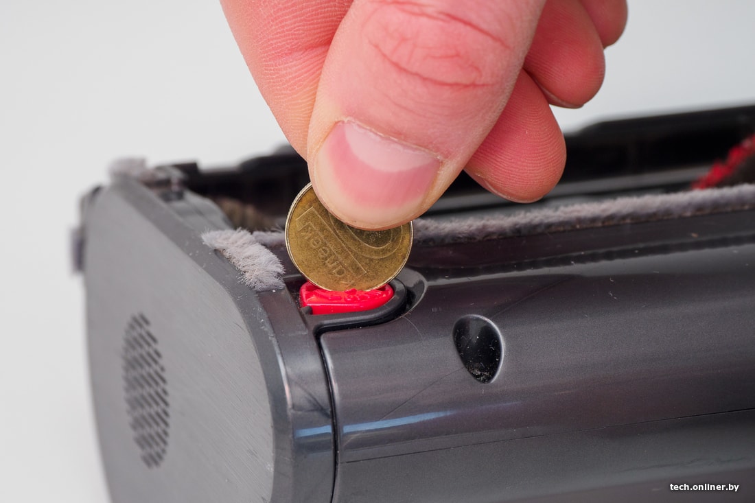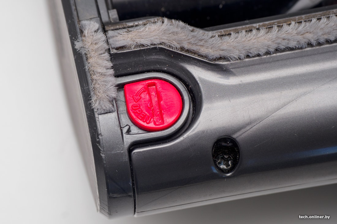 Около дисплея на ручке имеется кнопка высвобождения пылесборника, и сам он достается легко. А вот крышка с него (для доступа к мусору) снимается хуже, с явным усилием. Не понравилось.