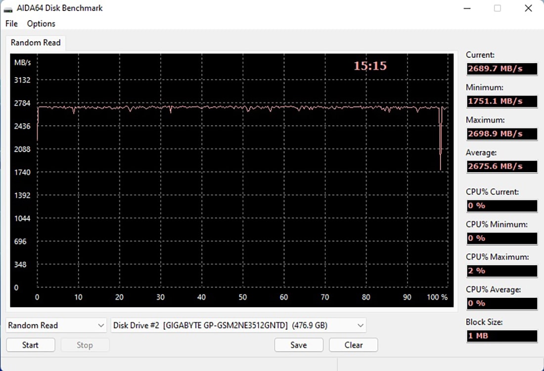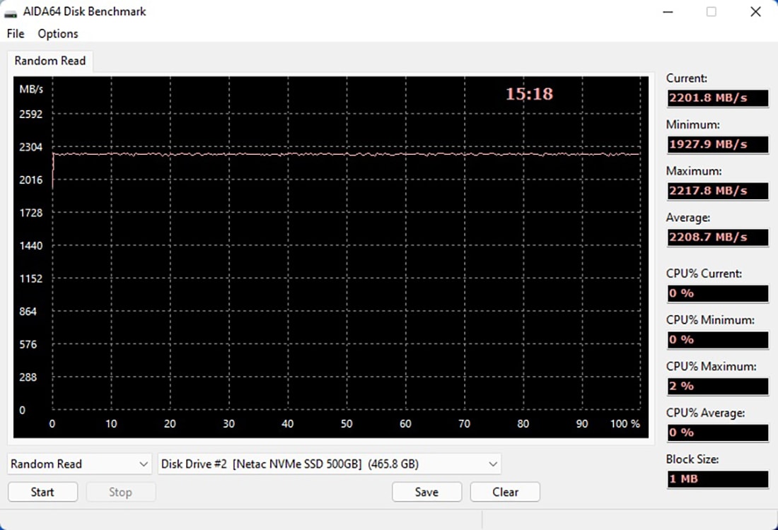 Линейное чтение с заполненного накопителя вновь демонстрирует лидерство Samsung 970 Evo Plus 500GB MZ-V7S500BW и Netac N950E PRO 500GB: минимальное время, высокая средняя скорость более 2000 МБ/с и ровные линии на графиках. Остальные участники выходят на пиковые показатели только на последних 30%. Тяжелее всего в данном тесте пришлось Gigabyte NVMe 512GB GP-GSM2NE3512GNTD и Kingston NV1 500GB SNVS500G: затраченное время более трех раз выше, чем у лучших участников, а в минимуме скорость опускается практически до 1000 МБ/с.
