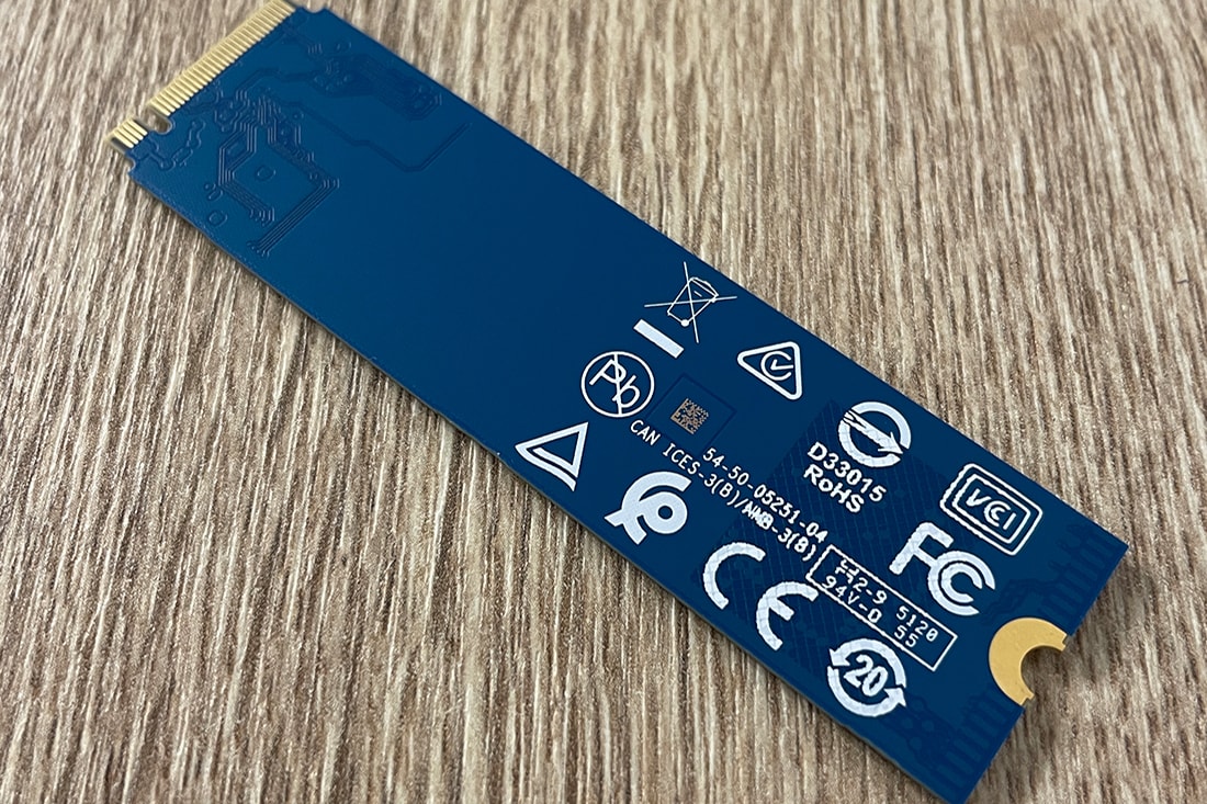Начнем с самого продаваемого накопителя от WD. Диск поставляется в картонной упаковке. Внутри обнаруживается пластиковый блистер с надежно защищенным SSD и брошюрка. Какая-либо дополнительная комплектация отсутствует. Используется односторонняя компоновка. С обратной стороны платы нанесена только маркировка разнообразных сертификатов. Стикер накопителя на лицевой стороне не накрывает собой ни контроллер, ни единственную банку памяти, маркировку с которой так просто не прочесть. Приходится идти на ухищрение и немного испачкать ее термопастой. Память промаркирована SanDisk 060523 512G — это 96-слойная 3D TLC NAND. Контроллер также от SanDisk с маркировкой 20-82-10023-A1. Снять показатели более точно при помощи утилиты VLO с данного контроллера, к сожалению, невозможно. Буфер DRAM отсутствует.