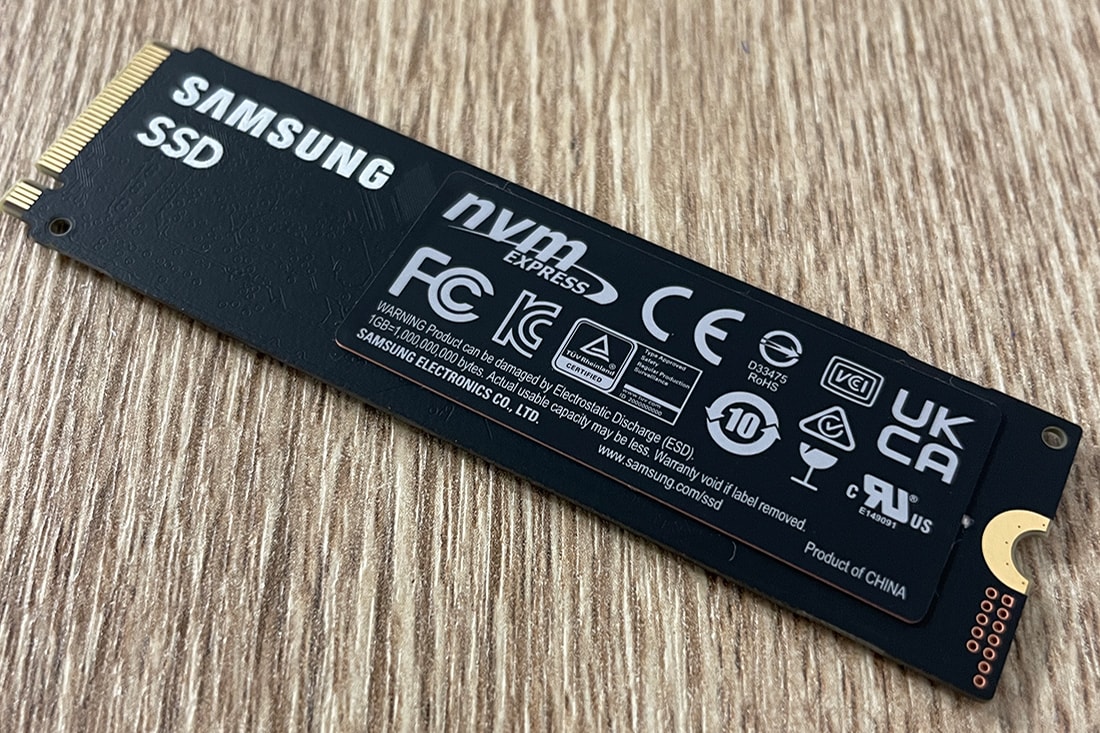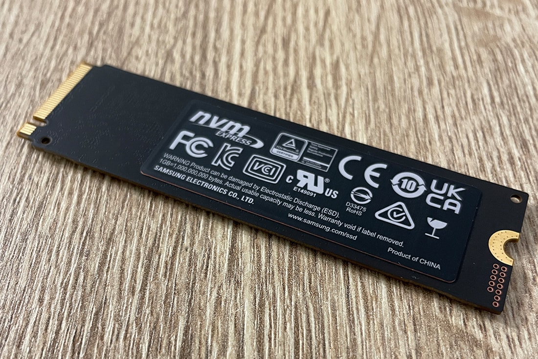 Новинка от Samsung, выпущенная на рынок в начале 2021 года. Дизайн упаковки в уже узнаваемом стиле, он практически неотличим от 970 Evo Plus. Внутри один лишь накопитель в пластиковом блистере. Исполнение самого диска также без изменений: черный текстолит, охлаждающая медная пластина-наклейка с обратной стороны и обычный стикер с лицевой. В основе накопителя Samsung Pablo — четырехканальный контроллер, который по своей сути является урезанной версией Samsung Phoenix. Также под наклейкой размещен один чип 128-слойной TLC 3D V-NAND. Собственный DRAM у диска отсутствует, но доступна технология HMB, как у накопителя Gigabyte.