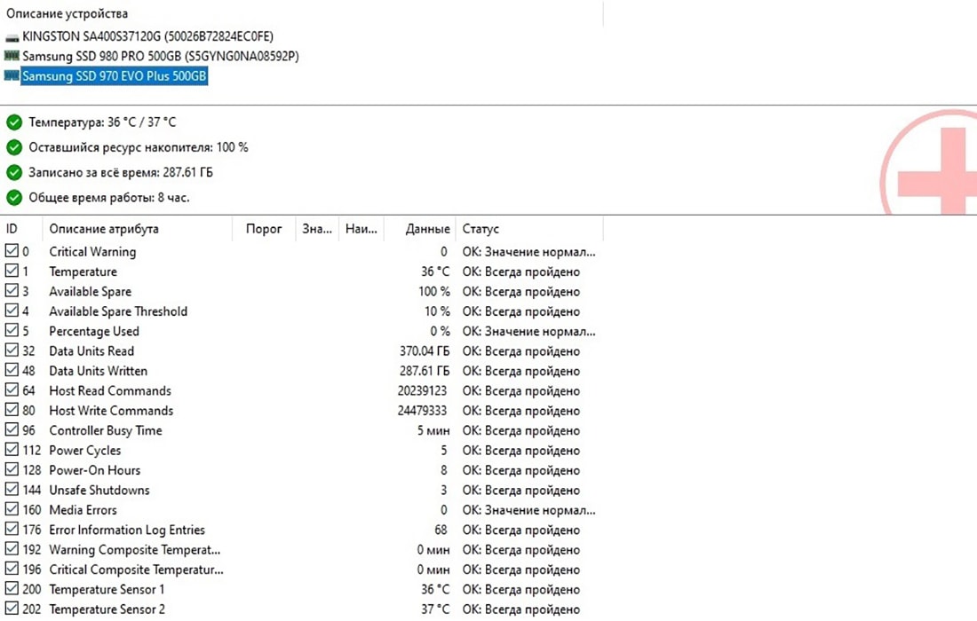 | Samsung 970 Evo Plus 500GB MZ-V7S500BW | 465 ГБ | Samsung Phoenix | 512МБ LPDDR4 SDRAM Samsung | Samsung TLC V-NAND 96-L |