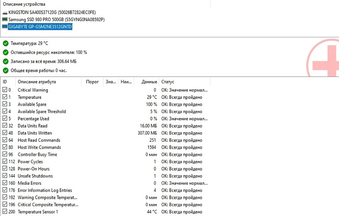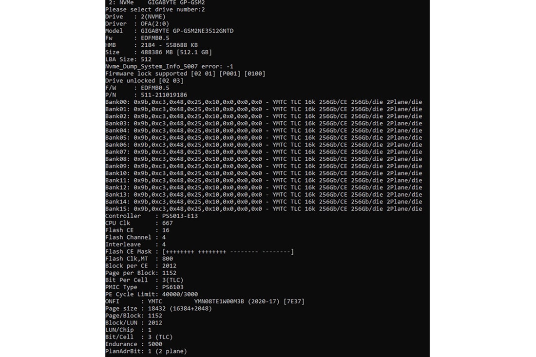 | Gigabyte NVMe 512GB GP-GSM2NE3512GNTD | 476 ГБ | Phison PS5013-E13-31 | отсутствует | YMTC TLC NAND |