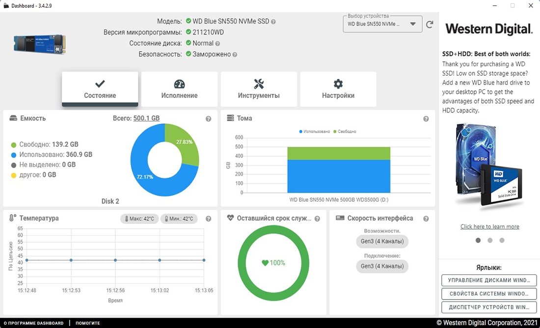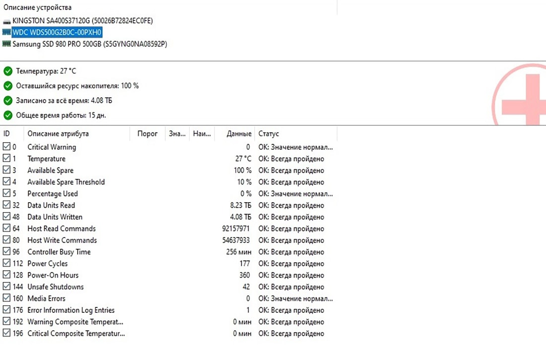 | WD Blue SN550 NVMe 500GB WDS500G2B0C | 465 ГБ | SanDisk 20-82-10023-A1 | отсутствует | SanDisk TLC NAND 96-L |