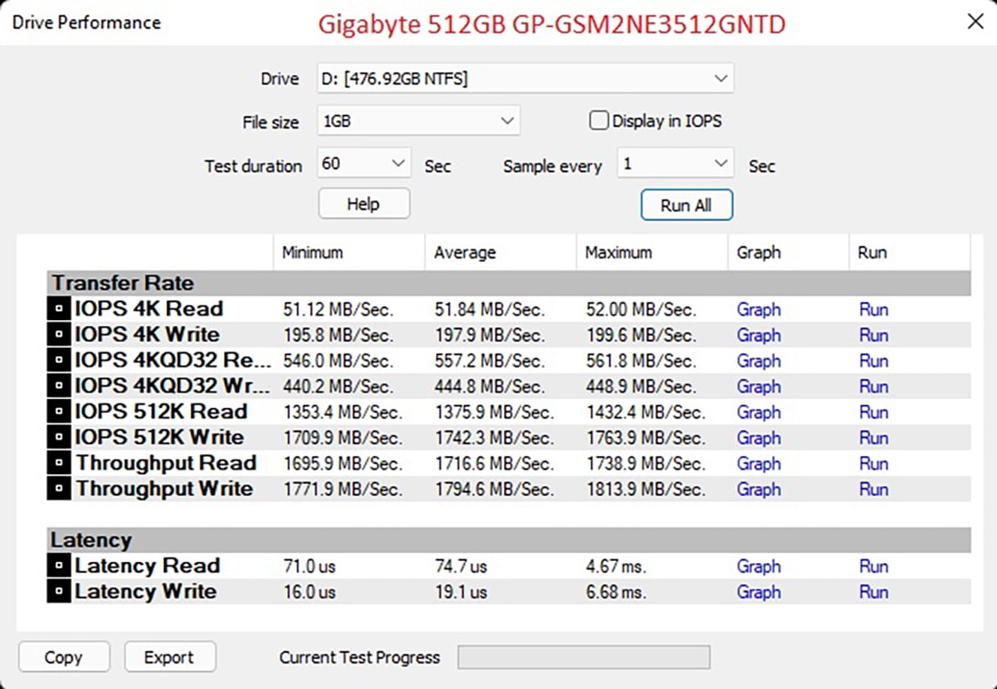 Отдельно стоит указать на то, что максимальное время доступа у накопителей Gigabyte NVMe 512GB GP-GSM2NE3512GNTD и Samsung 970 Evo Plus 500GB MZ-V7S500BW заметно меньше остальных конкурентов.