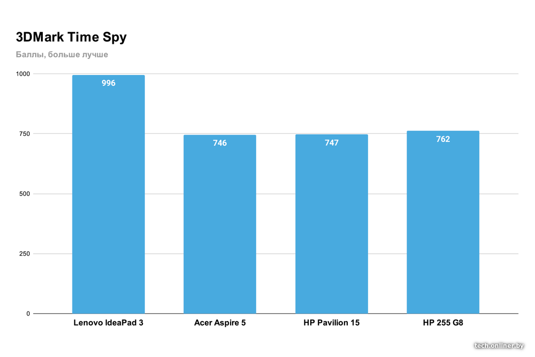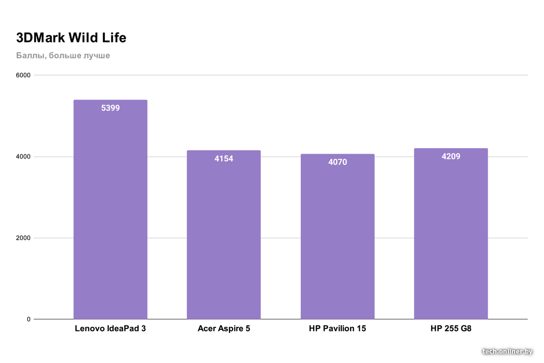 По итогам тестов, ноутбук Lenovo опережает другие модели. Скорее всего, из-за более высокого TDP процессора при длительной нагрузке и двухканального режима работы памяти, установленных по умолчанию прямо из коробки в выбранной конфигурации.
