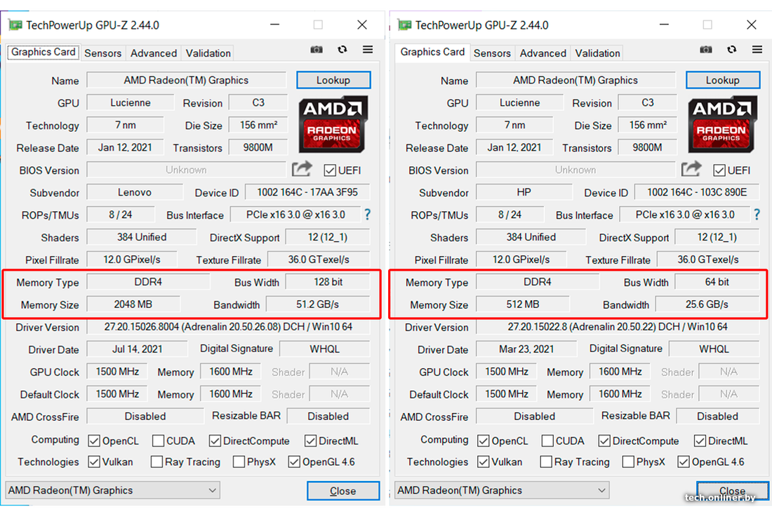 Однако на практике разница проявилась в конфигурации и настройке памяти, которая выделяется из оперативной под работу с графикой. В трех моделях по умолчанию для видеопамяти отводится только 512 МБ, но у Lenovo — аж 2 ГБ. Вдобавок там двухканальный режим, а значит и выше скорость работы.