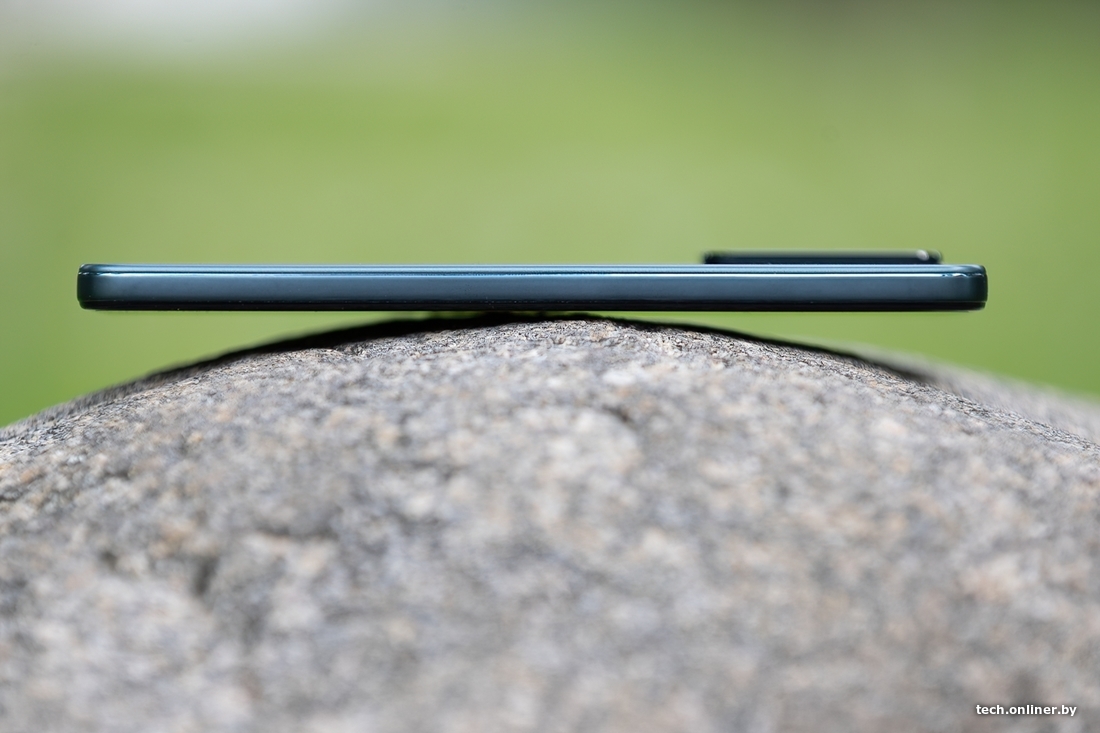 В остальном все привычно: в активе и технология защиты от воды и пыли (IP53), и стереодинамики, настроенные JBL — соответствующая настройка по умолчанию активна, звучат спикеры мощно и чисто — есть слот для одновременной установки либо двух nano-SIM-карт, либо одной «симки» и карты памяти. NFC-модуль и 5G-модем также на месте. Правда, для Беларуси на момент публикации материала последнее не особенно актуально. Со сканером отпечатков в клавише питания все ок — работает исправно.