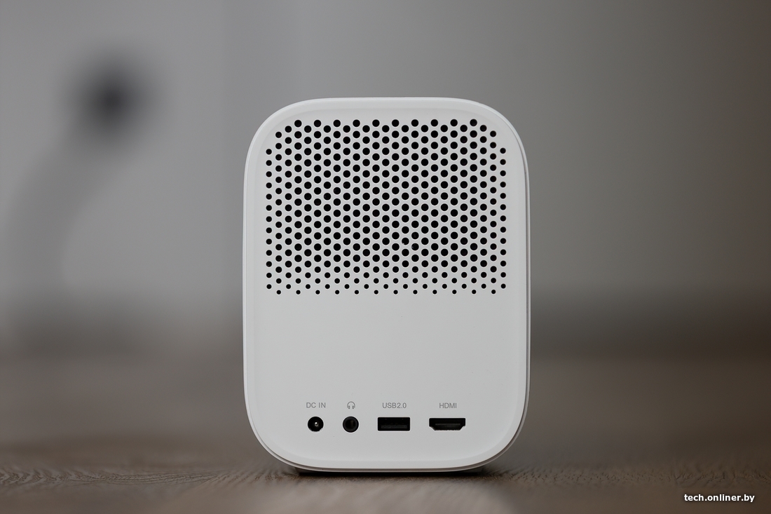 У пульт падсветку, на жаль, так і не давезлі. Партоў усяго тры: для навушнікаў, HDMI і USB 2.0. Ёсць аўтанастройка факусіроўкі і трапецападобных скажэнняў. Аператыўнай памяці ўсяго 2 ГБ — гэтага, на самой справе, дастаткова. А вось працэсар нейкі слабенькі. Дэвайс часам адчувальна «тупіць», падтарможвае. Відавочна, што «жалеза» не хапае нават для такіх сціплых магчымасцей.