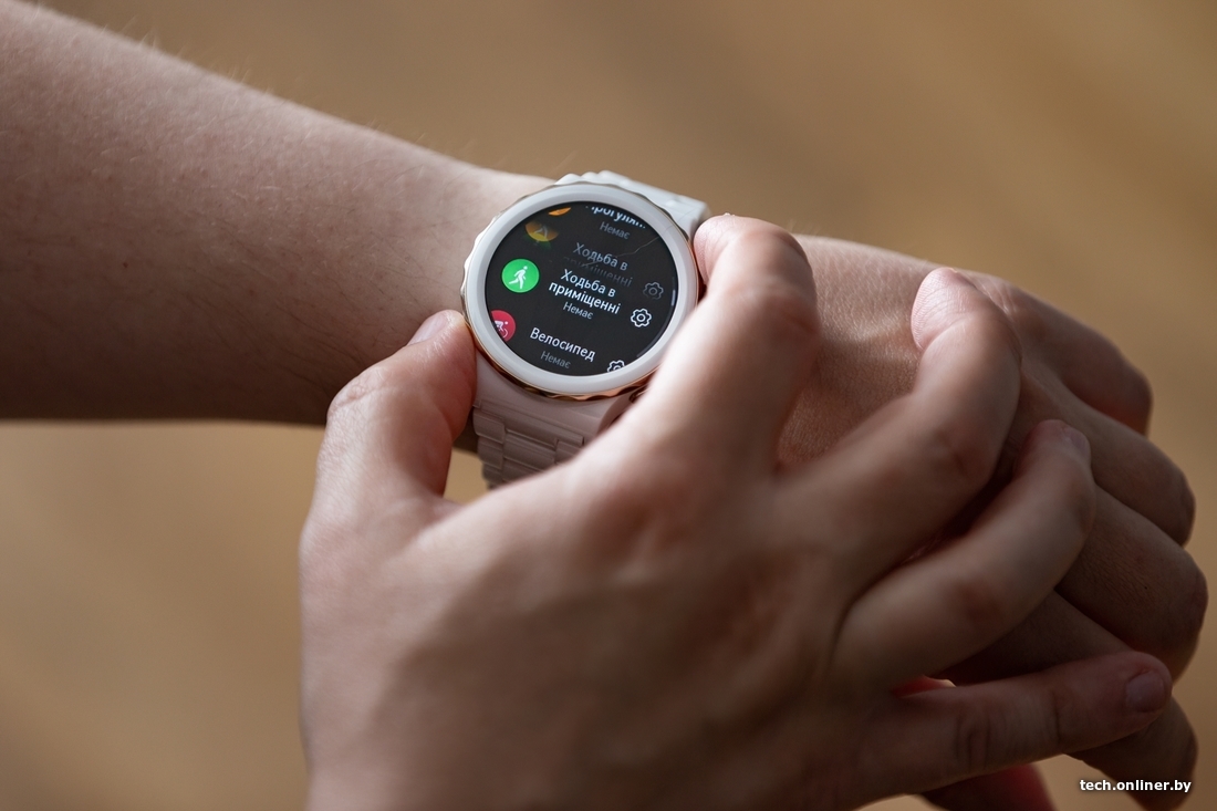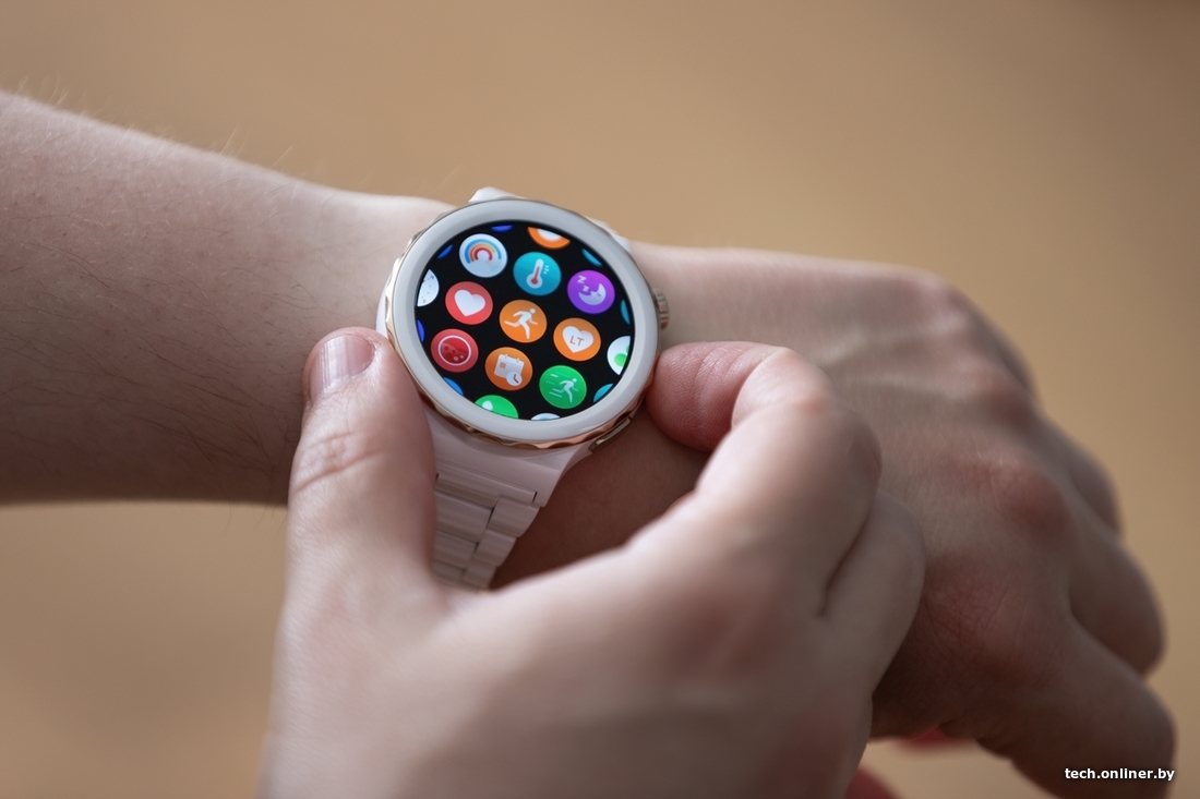 Гадзіннік Huawei Watch GT 3 Pro выпускаецца ў чатырох мадыфікацыях. Дзве больш танныя зроблены ў тытанавым 46-мм корпусе, а больш даражэйшыя — у 43-мм корпусе з керамікі. Да нас на агляд патрапіла самая дарагая версія гадзінніка — Huawei Watch GT 3 Pro у керамічным корпусе, з керамічным бранзалетам і сталёвым безэлем залацістага колеру. Мадэль відавочна жаночая, але гэта не перашкодзіла нам яе патэсціць на працягу некалькіх дзён.