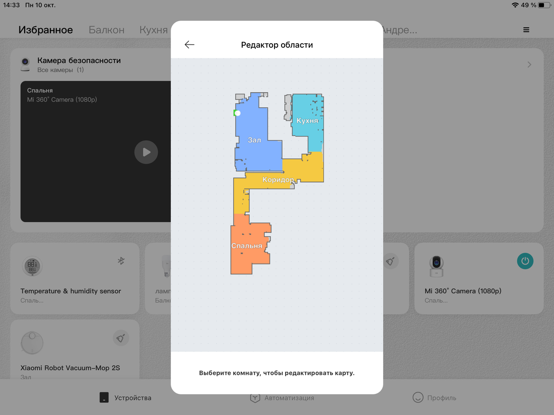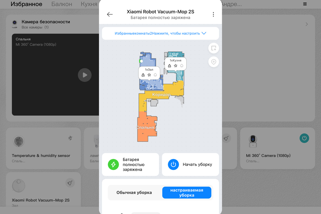 При первом запуске пылесос предлагает построить карту квартиры. Двушку робот сканирует всего за 3 минуты. Сразу разбивает на комнаты. Не идеально, но если нужно отредактировать — все можно сделать в настройках карты.