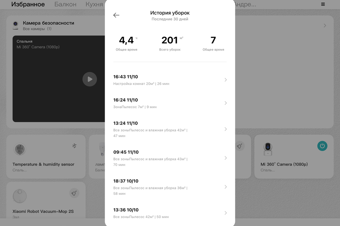 Справедливости ради, это простительно. Ведь тщательная уборка нужна далеко не каждый день. Да и после полной подзарядки девайс поедет и доделает то, что не успел закончить. На всякий случай протестировали после полной зарядки робота еще в двух режимах: Y-образная траектория уборки плюс стандартные настройки и обычный зигзаг плюс максимальная мощность. В таких сценариях хватает и батареи, и воды в баке. Отчет об этих уборках — на скриншотах ниже.