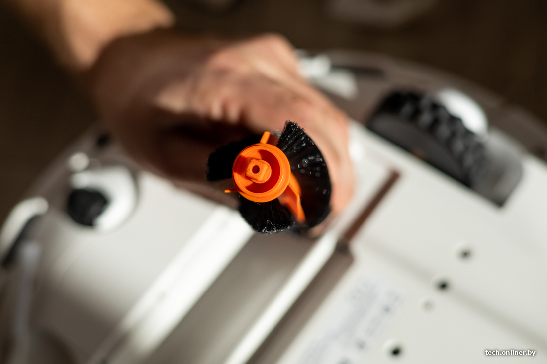 Турбощетка съемная. В комплекте есть специальный нож для очистки, который расположен под верхней крышкой робота в специальном отсеке.