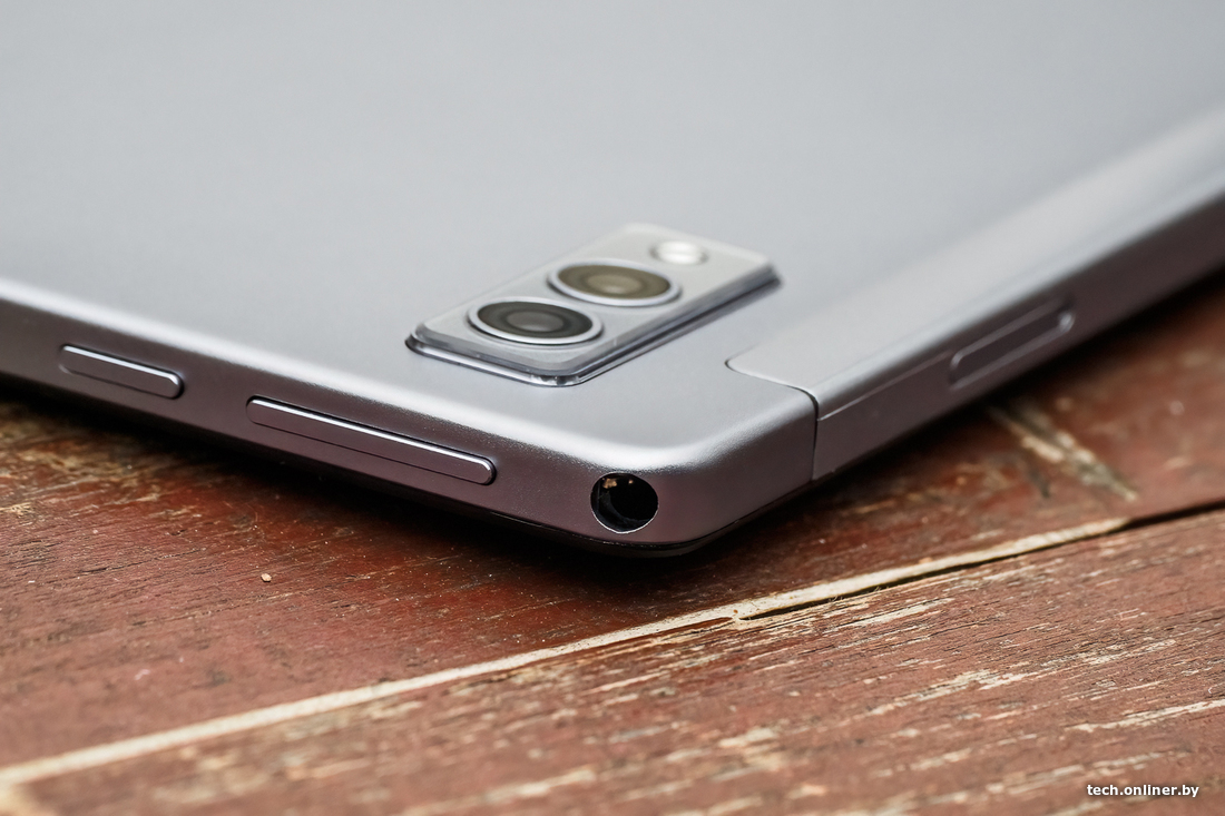 Если держать планшет зарядным разъемом USB Type-C вниз, кнопка включения и качелька громкости окажутся на нижнем торце под левой рукой. Терпимо, но непривычно: чаще они вверху корпуса и справа. Здесь же (внизу слева) на самом уголке — 3,5-мм разъем. Если в процессе работы задуматься, вполне можно вырвать штекер подключенных наушников, который к тому же затруднит доступ как минимум к кнопке громкости. И наконец, вы постоянно будете лапать оказавшийся тут же модуль основной камеры.