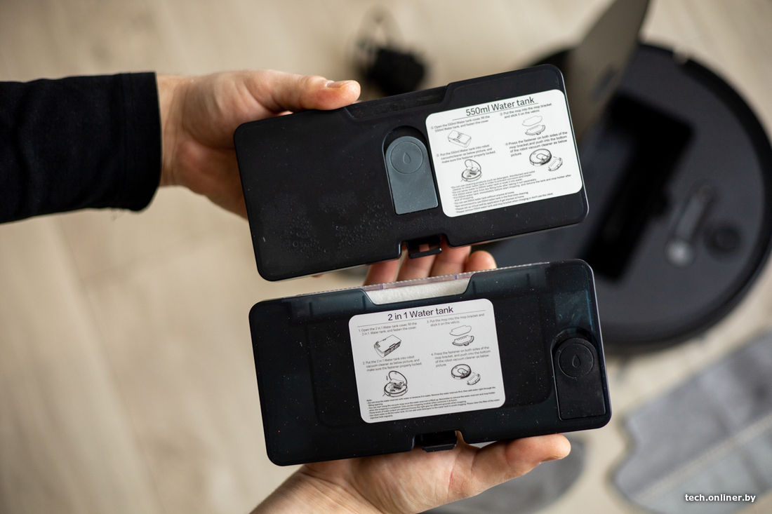 Кстати, о влажной уборке. Очень порадовал V3 Max. На максимальном режиме подача воды действительно видна и ощутима, даже немного переживал за ламинат. Воды для уборки ожидаемо не хватило, робот проинформировал о необходимости доливки жидкости. Долили — уборка продолжилась. Остальным моделям хватило бака впритык, но максимальный уровень увлажнения был куда ниже.