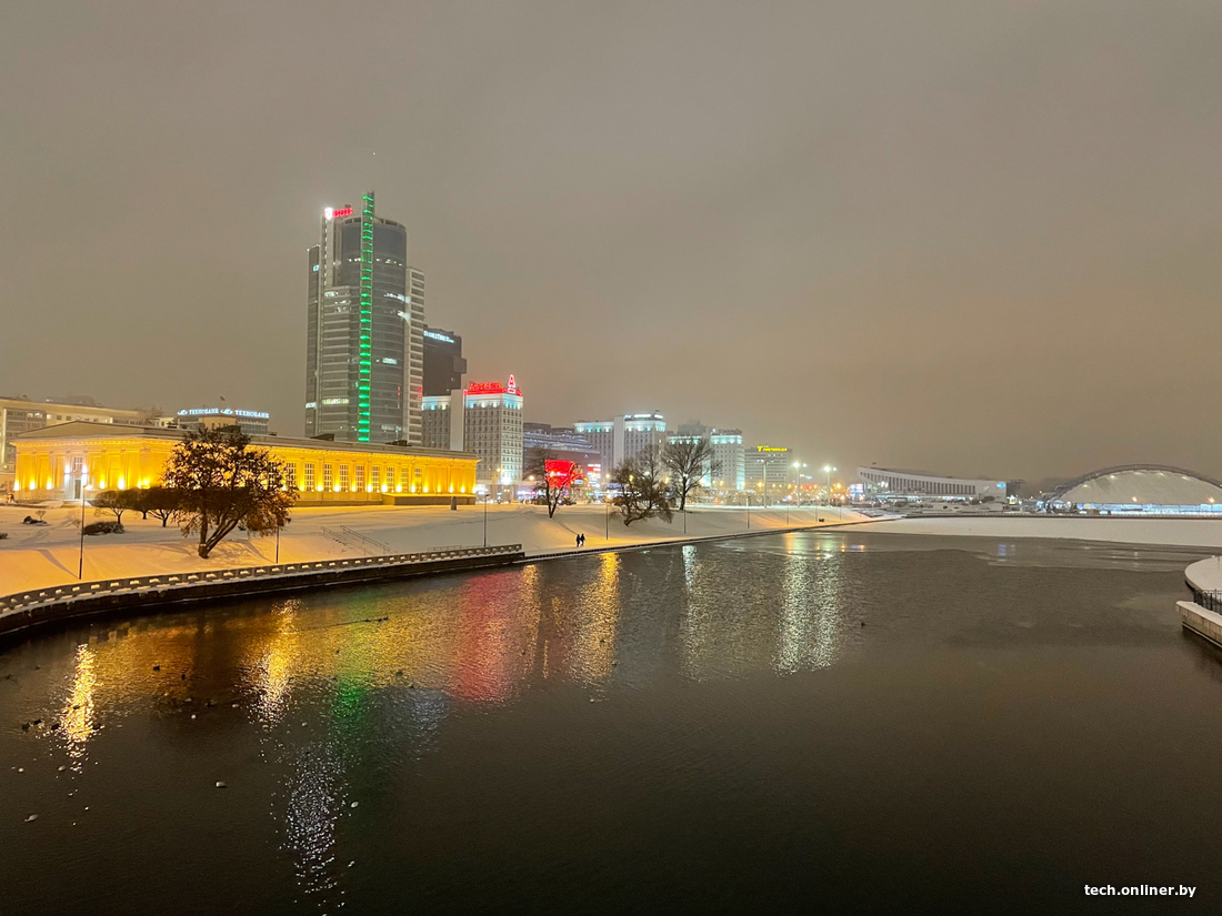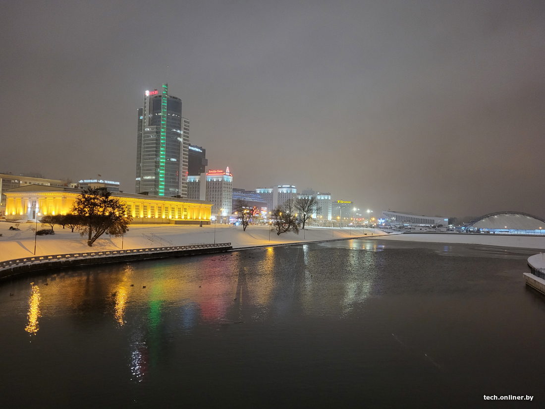 Тут первое место за Samsung и Honor: Samsung умудрился не потерять шпиль на Royal Plaza, четко вывел окантовку буквы «А», обошелся без шумов на торце здания с желтой подсветкой, но чуть уступил в деталях на переднем плане и контрастности Honor. У Xiaomi получились более бледные цвета, не такие насыщенные, как в реальности. iPhone традиционно сошел с ума от красной вывески и просто разлил цвета за ее пределы.