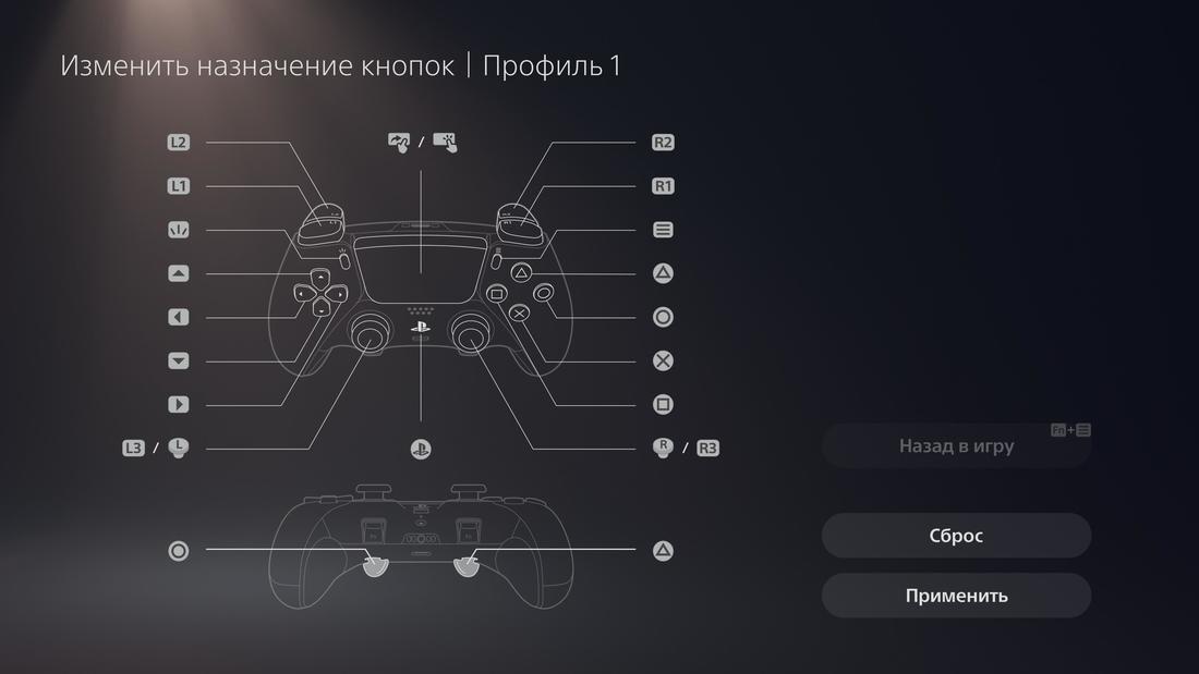 Четвертый элемент — две клавиши Fn, расположенные прямо под аналоговыми стиками управления. У них одна задача — на лету переключаться (зажимаешь одну из клавиш Fn, параллельно нажимая на «нолик», «крестик», «квадрат» или «треугольник») между уже заранее подготовленными в ОС консоли профилями. Плюс — несколько таких профилей забиваются в сам геймпад (если принесете Edge к друзьям к другой PS5, заново настраивать их, по идее, не придется).