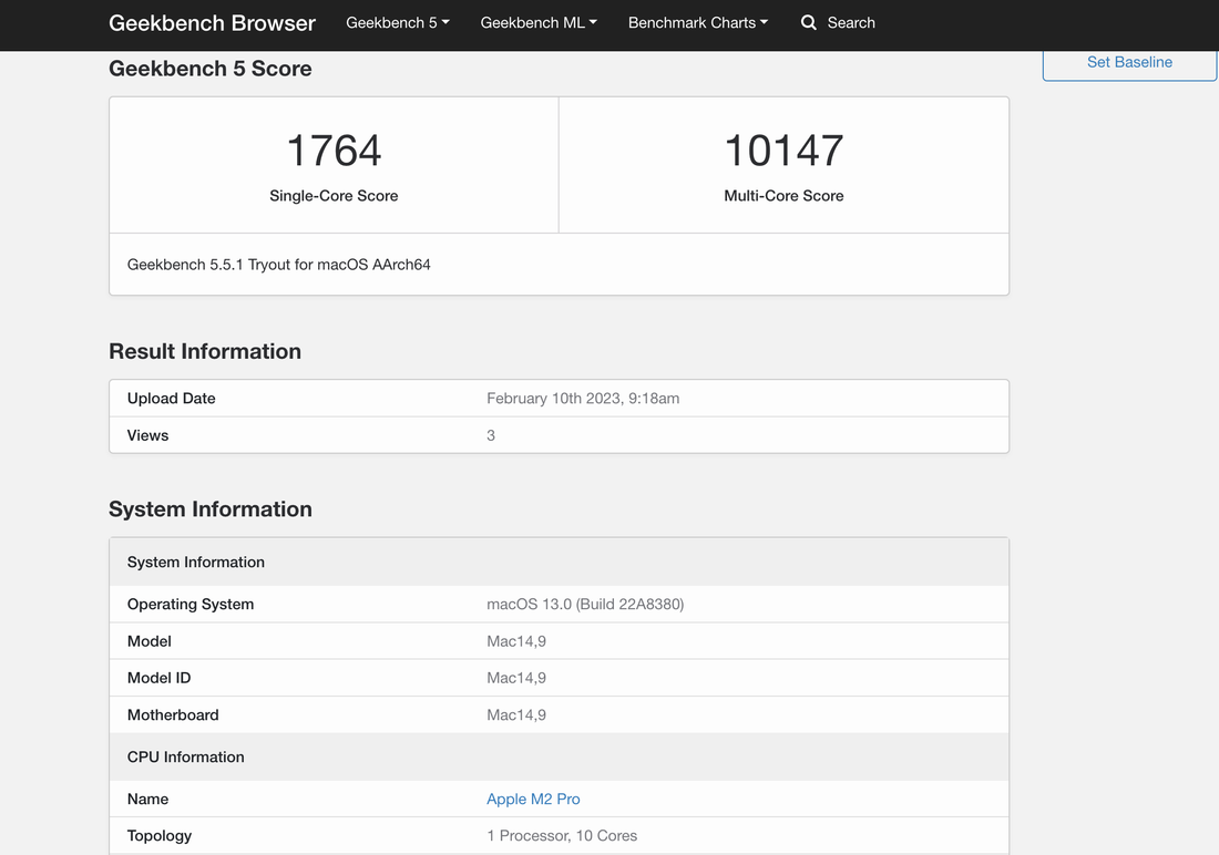 У нас была младшая версия с 10-ядерным чипом, 16 ГБ оперативной памяти и накопителем на 512 ГБ. Как поведет себя новинка в сравнении с прежними чипами Apple? Для начала мы запустили бенчмарки, где сравнили производительность M2 Pro с предшественником M1 Pro, а заодно с самым первым M1 и M1 Max.