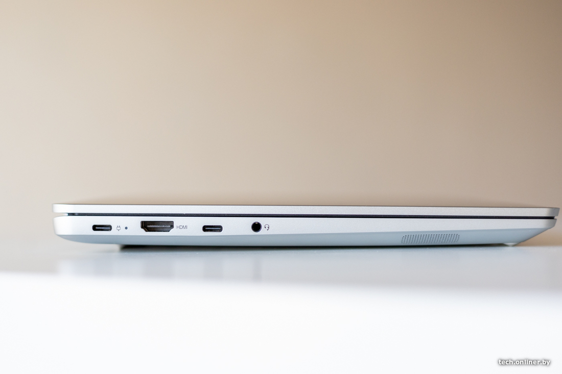 На боковых гранях HDMI, два USB-A и два USB-C. Заряжается ноутбук через USB-C, что очень комфортно, дабы не таскать с собой множество кабелей и блоков питания. Одно зарядное для ноутбука, смартфона, наушников и других гаджетов. В отличие от прошлогодней модели, теперь оба USB-C выводят видео на внешние мониторы и заряжают ноутбук. В нашем случае это оказалось только в теории.