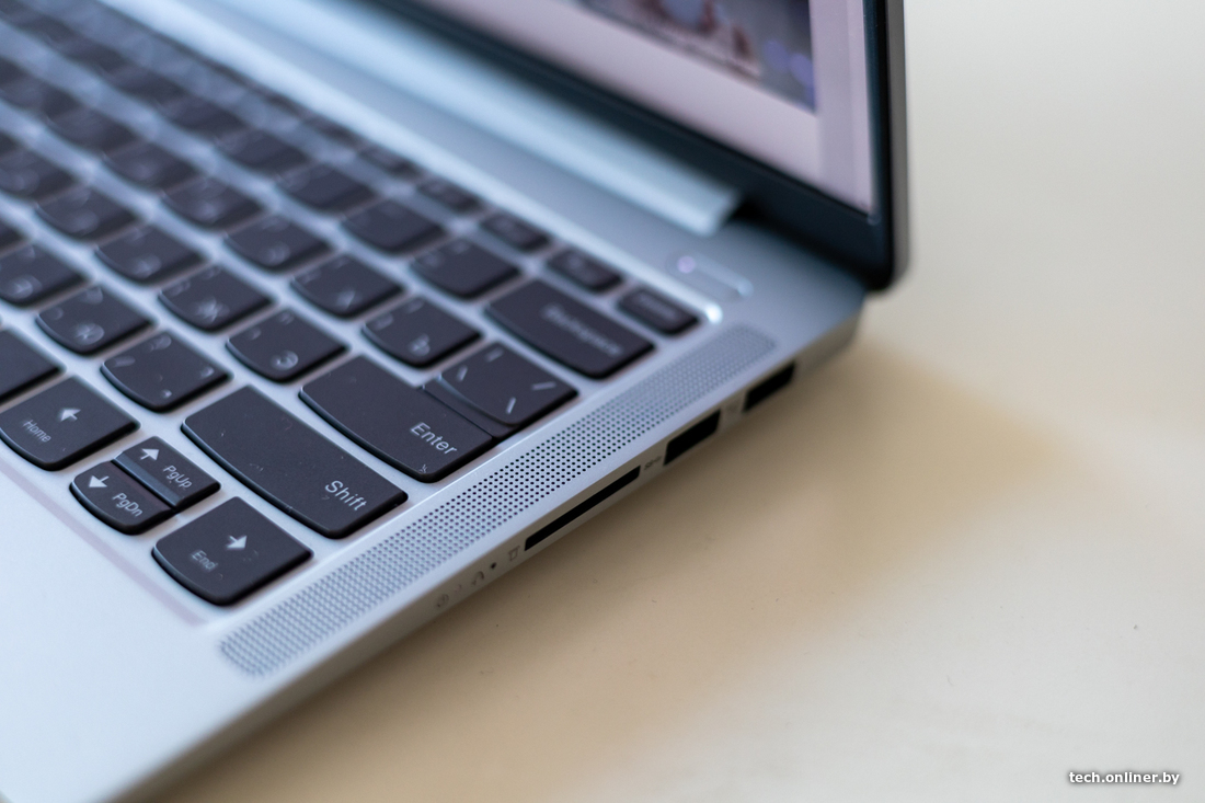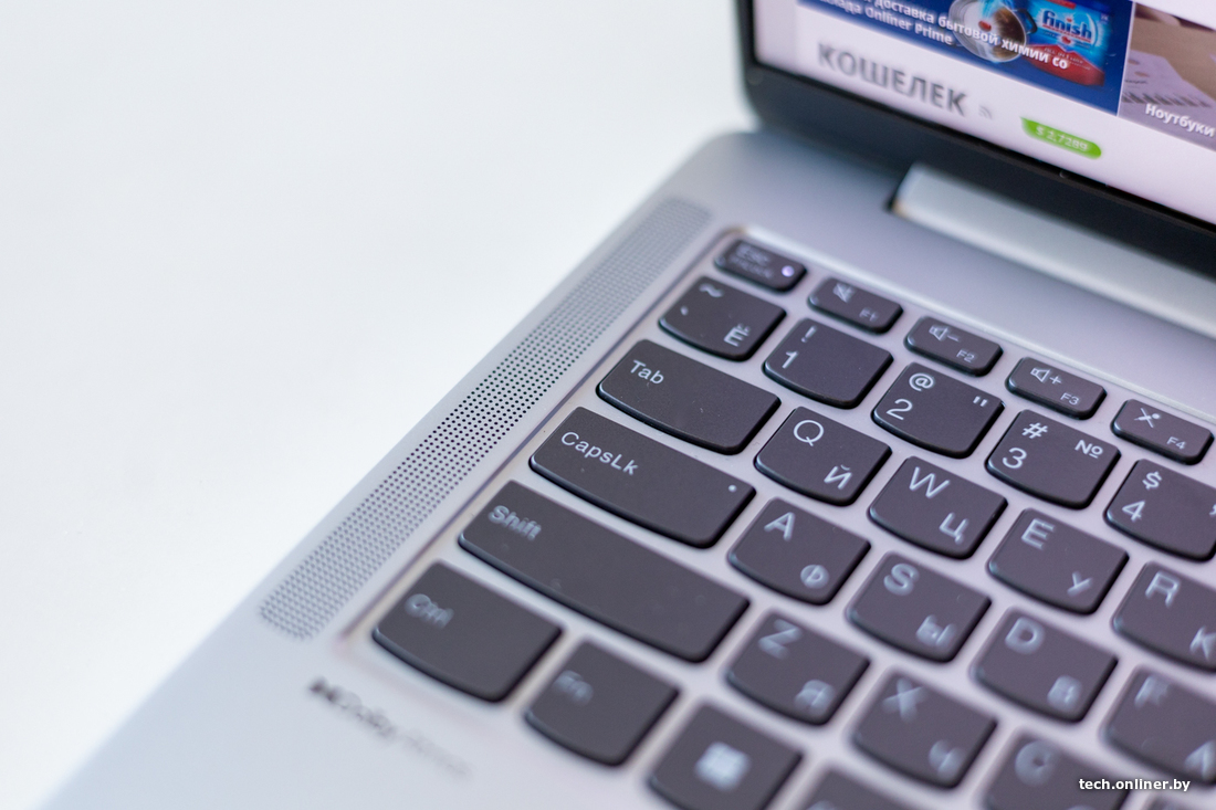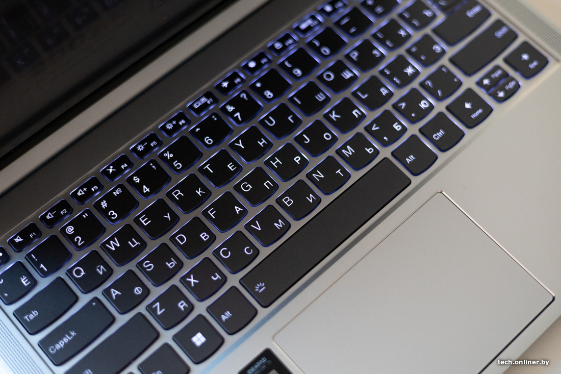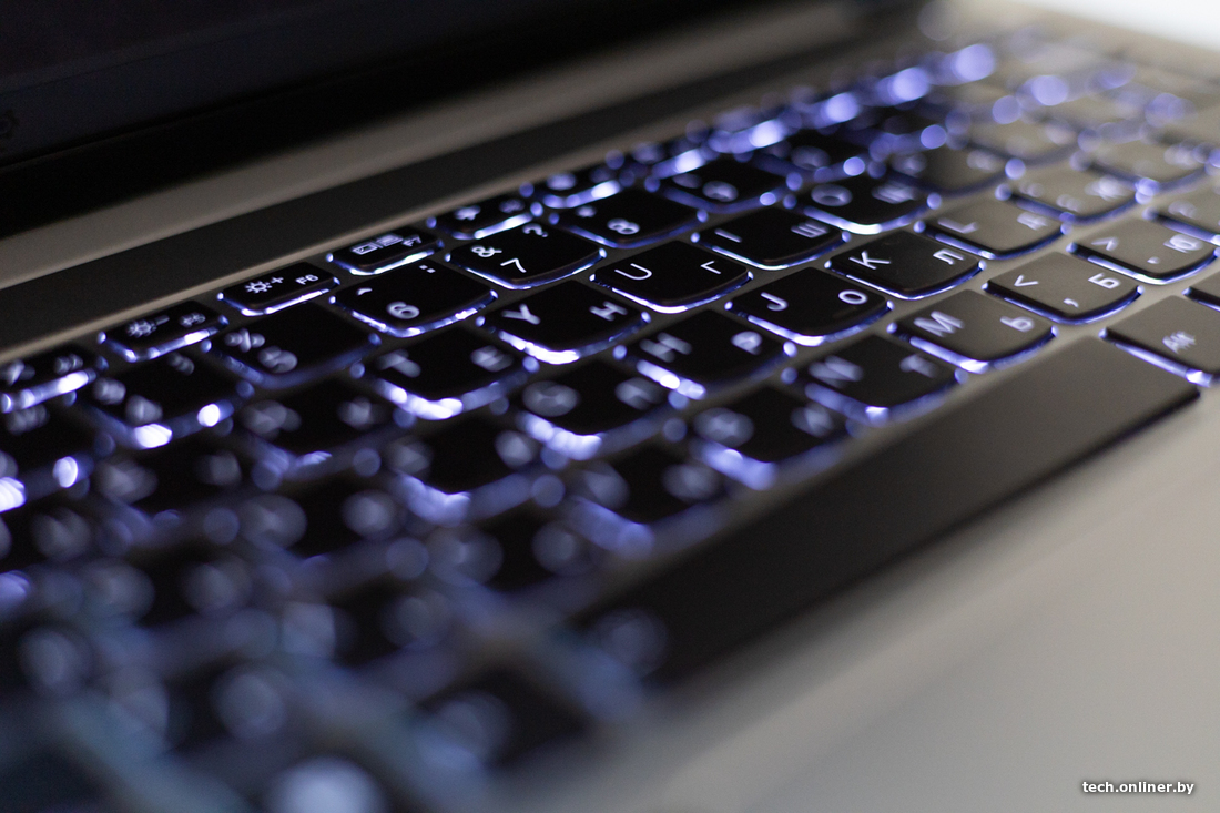 У него хорошая клавиатура с приятным тактильным откликом и двухуровневой подсветкой. По бокам от нее расположены вентиляционные решетки, которые можно перепутать с динамиками, установленными все-таки по углам внизу.