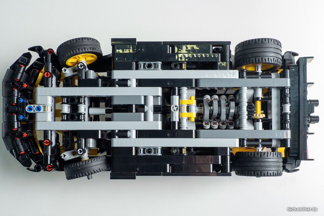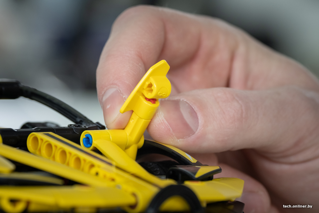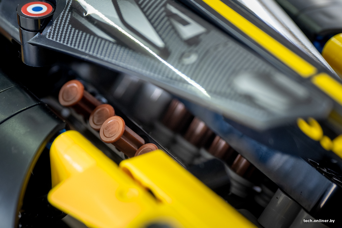 По функционалу болид не очень богат, но и его цена при этом невысокая относительно других наборов LEGO. У нового Bugatti поднимается капот, открываются двери, двигаются поршни в двигателе и есть рулевое управление сверху (руль в салоне для красоты).
