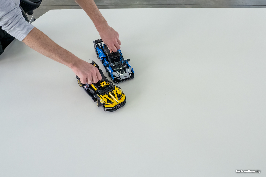 Два спорткара очень сильно похожи с точки зрения Technic-наборов. У них почти одинаковые размеры, верхнее рулевое управление, открывающиеся двери-ножницы и капот.