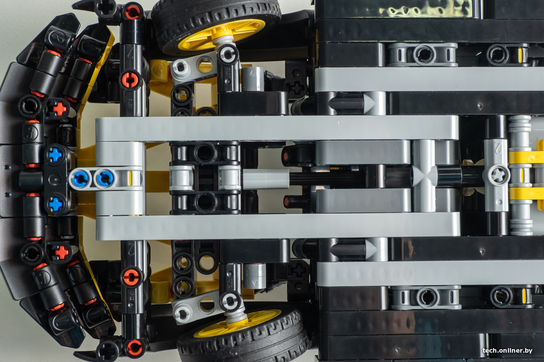 Сперва собирается основа шасси с первыми элементами салона, затем двигатель, где легко накосячить и потом все переделывать, после приборная панель и дальше по списку остальные элементы кузова деталь за деталью. В целом сборка несложная и, как и положено набору Technic, очень интересная.
