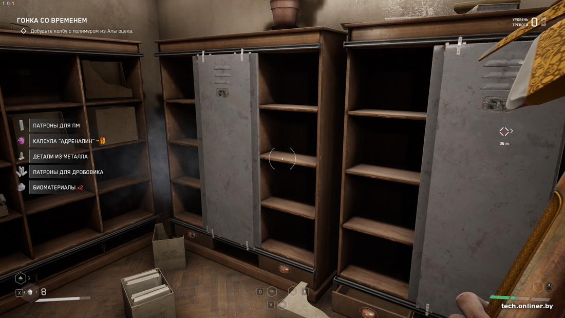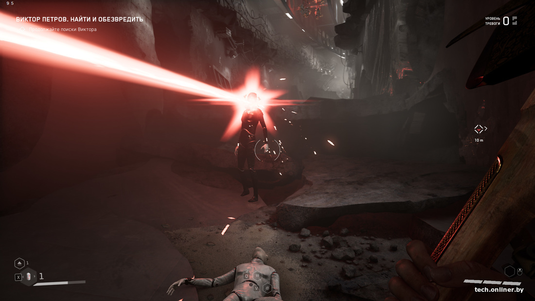 Полимер — одновременно и ресурс для апгрейда способностей героя, точнее его перчатки. Добывать его не придется, материал можно найти в переработанном виде в колбах для инъекций. Заодно придется собирать лут, много лута. Процесс максимально автоматизирован и почти не надоедает (надоедает), барахло понадобится в астрономических масштабах, так как в противном случае сборки и апгрейда оружия не видать.