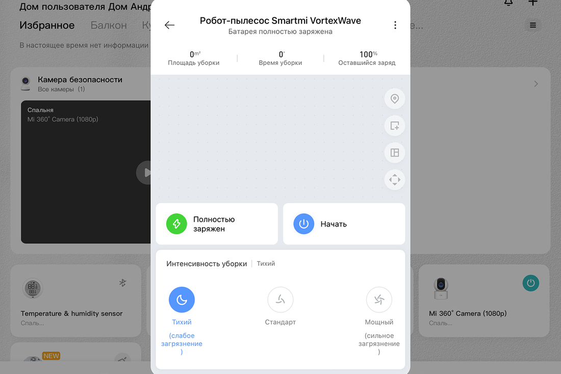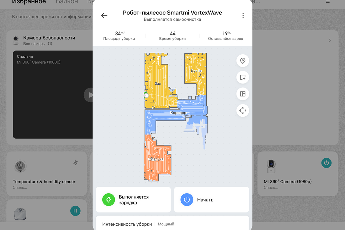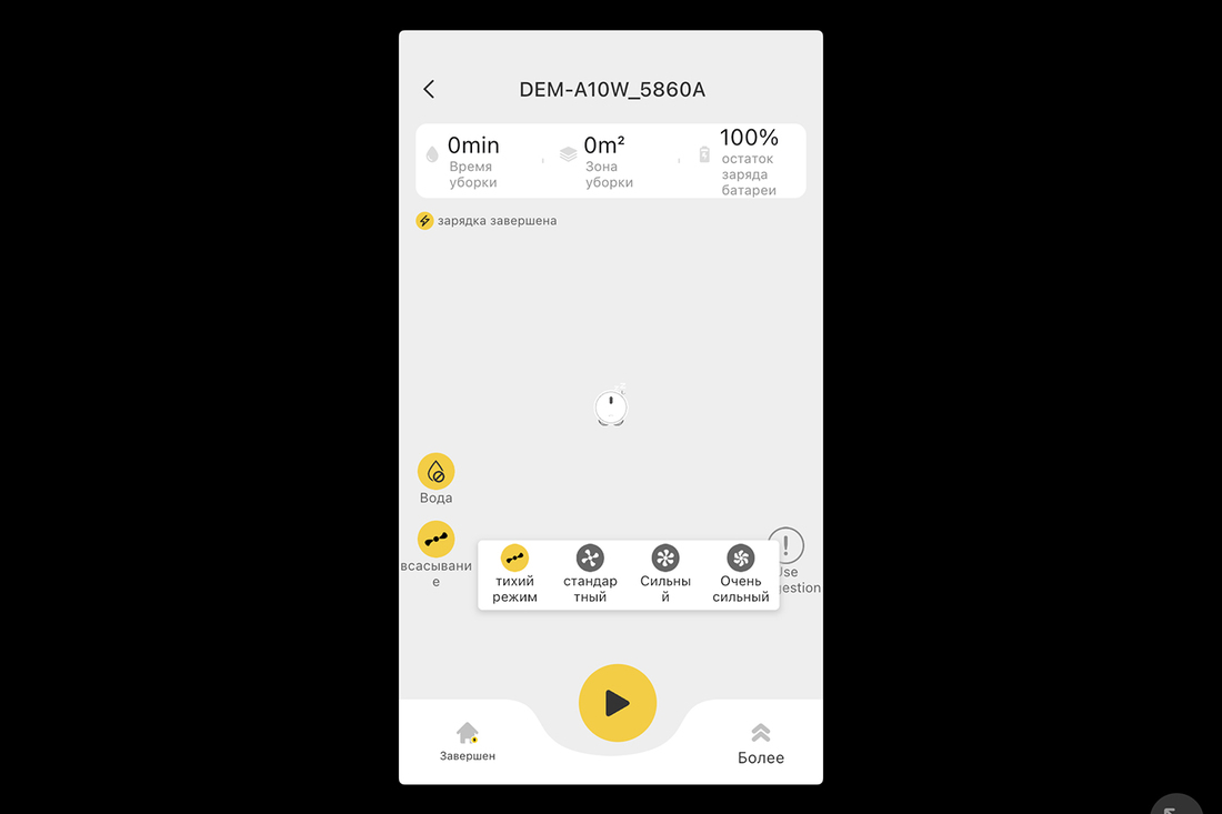 Вариантов управления несколько. Простой, с помощью кнопки, и тоже несложный — посредством мобильного приложения Mi Home. Все привычно, как и у большинства роботов-пылесосов семейства Xiaomi и им подобных. Функции приложения следующие.