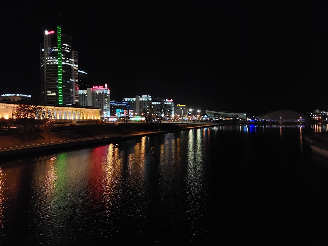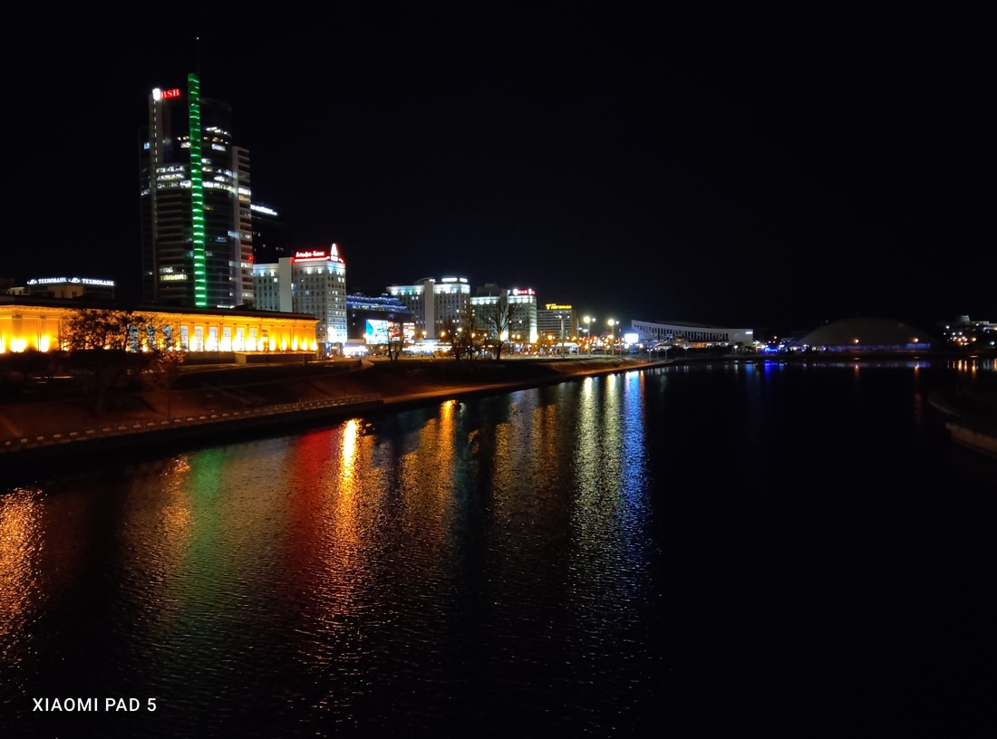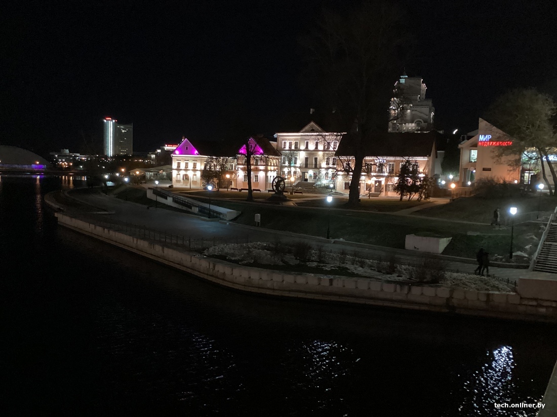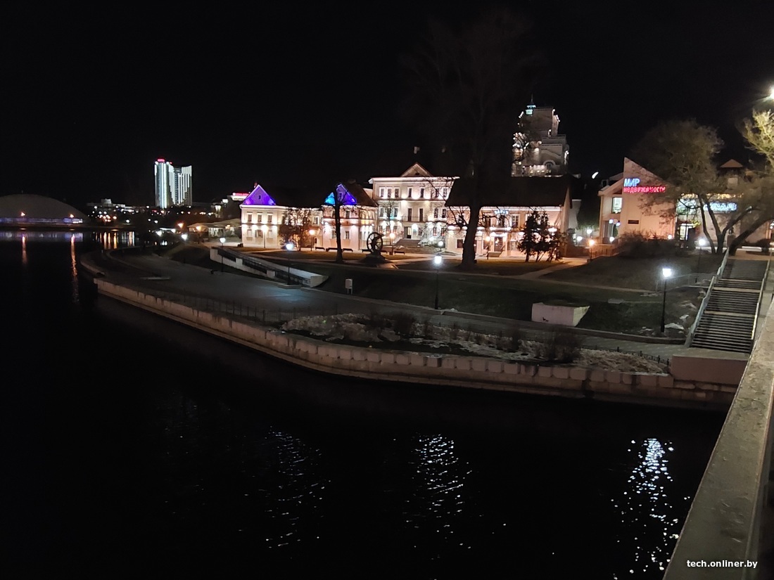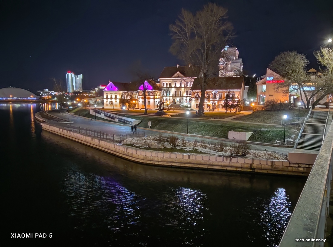Опираемся на перила моста, пробуем снять с планшета на более длинной выдержке. И тут опять очевидна сила Xiaomi: у нас получается яркий, довольно детализированный и резкий ночной снимок. Видны даже веточки дерева, тогда как на снимках конкурентов легко не заметить и все дерево.