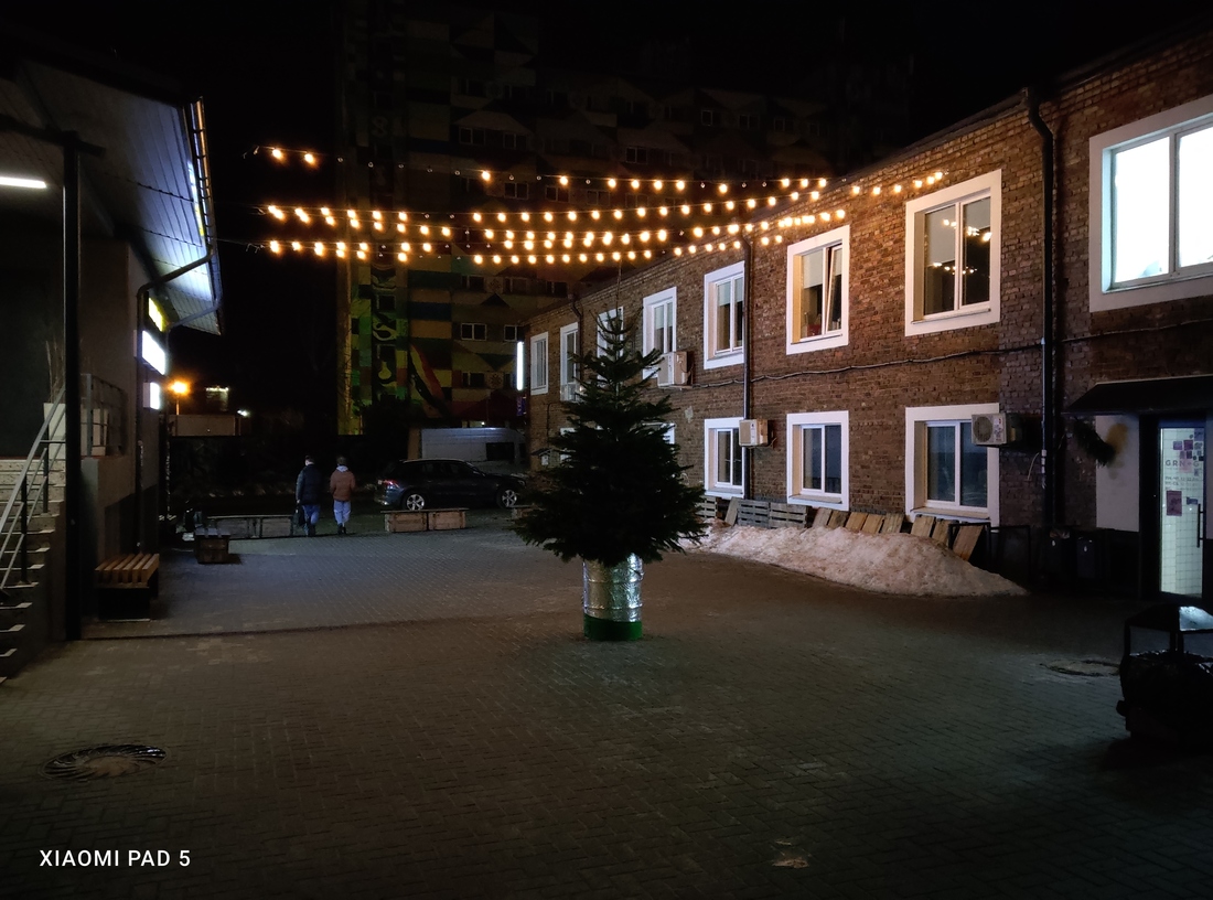 Самая четкая фольга на бочке с елкой, отдельно видны кирпичи, вполне себе круглые лампочки подвешенной гирлянды (перед каждой съемкой мы протирали стекла камер) не оставили конкурентам шансов. В этой ситуации однозначным победителем выходит планшет Xiaomi.