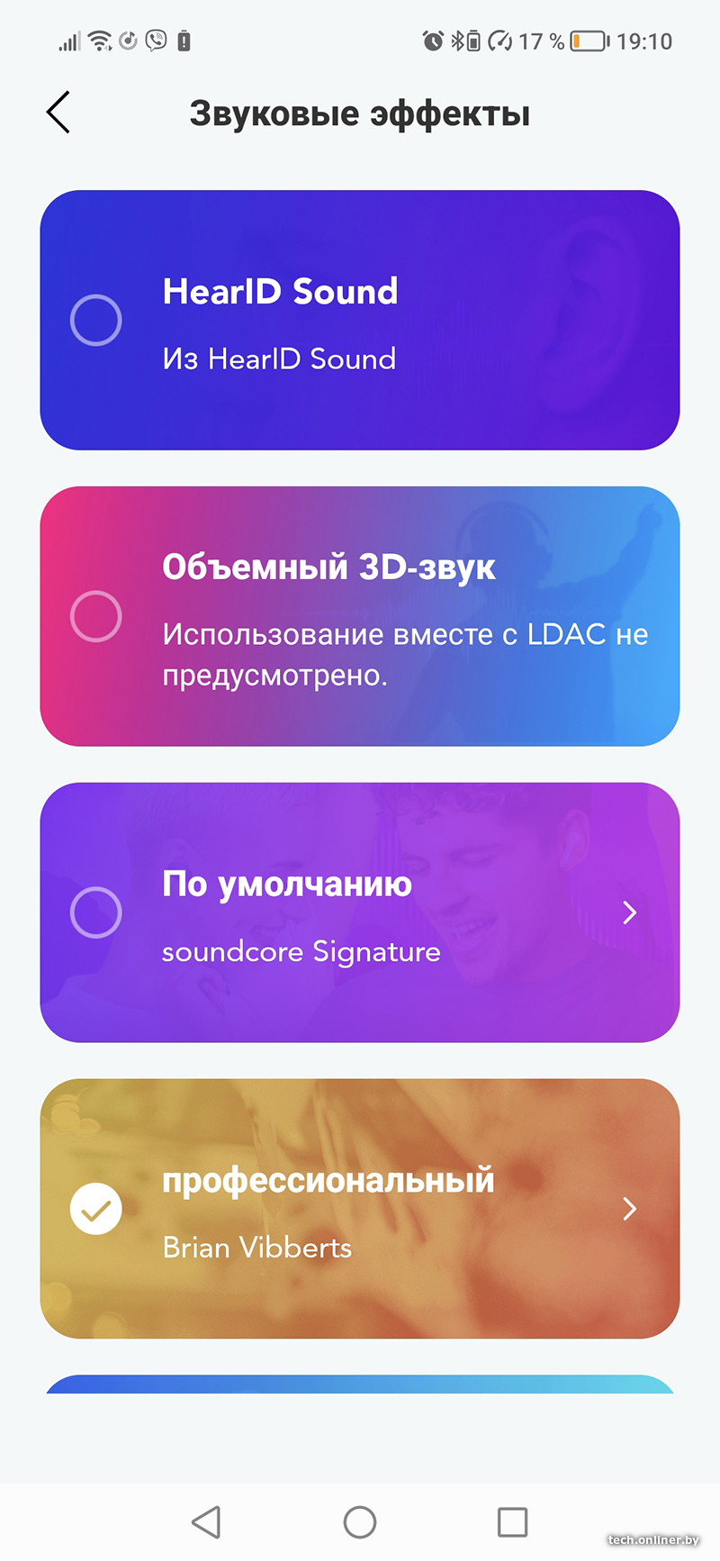После запуска приложения рекомендуется воспользоваться функцией HearID, которая генерирует персонализированные настройки звучания для наушников Anker — и в этом кроется их фишка. Кроме того, для повышения качества стоит активировать режим LDAC. С последним есть нюансы: во-первых, после включения LDAC наушники смогут работать только с одним устройством — источником звука. Во-вторых, повысится энергопотребление — время автономной работы снизится (нам сложно судить насколько). Данную функцию можно отключать.