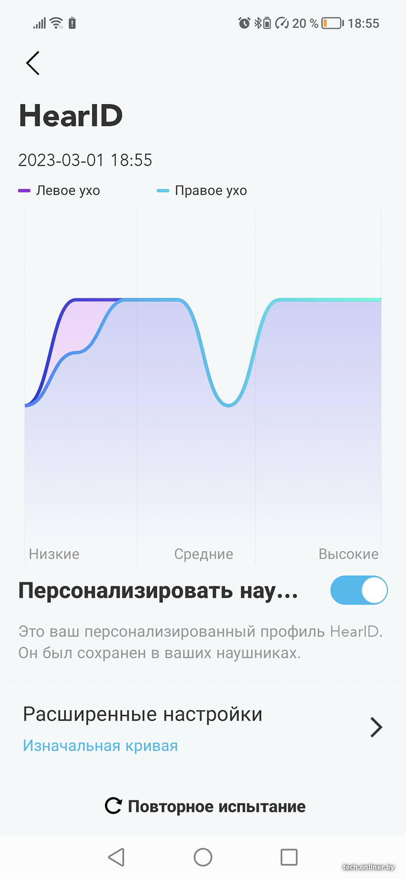 Наушники одинаково выразительно передают низкие и высокие частоты: в некоторых случаях и тех и других бывает слишком много. Настройка HearID позволяет добиться качественного звучания без лишних телодвижений, хоть и придется потратить время на настройку. Другой вариант — прибегнуть к пресетам от известных музыкантов: набор достаточно обширный и можно подобрать под свой вкус. И наконец, третий вариант: собственные настройки эквалайзера.