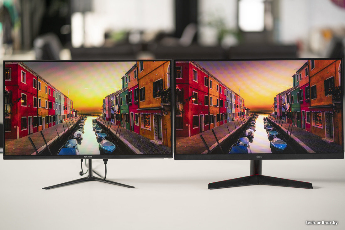 Мы попробовали сравнить два монитора на стандартных настройках. Результат на видео ниже. LG, по собственным ощущениям, показывает себя лучше и приятнее Evolution. Зеленоватость последнего мы никакими настройками исправить не смогли.
