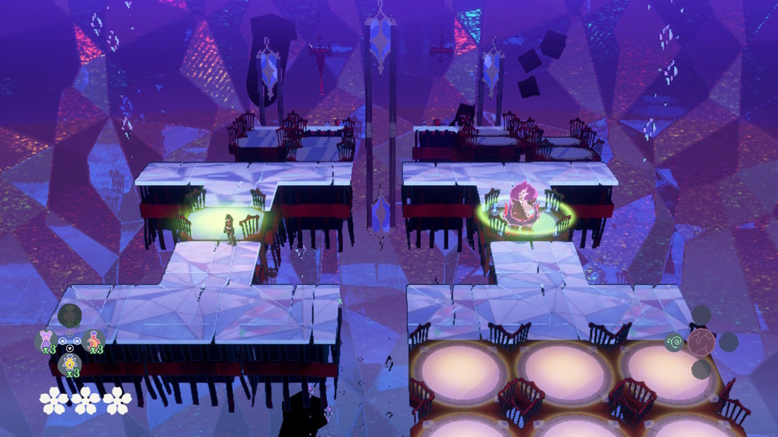 Мы упоминали, что управление в игре дружелюбно к игрокам с любым уровнем подготовки. И одновременное управление ведьмой и демоном выглядит свежо. Но все же в боях на поздних стадиях игры, когда разнообразие противников растет и их становится много, очень просто запутаться. В разгаре битвы Сереса может оказаться справа (управляем левым контроллером), а Чешир — слева (управляем правым контроллером). Тогда-то и узнаешь на собственном примере, что такое «взрыв мозга».