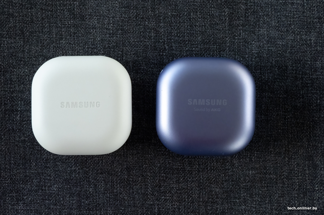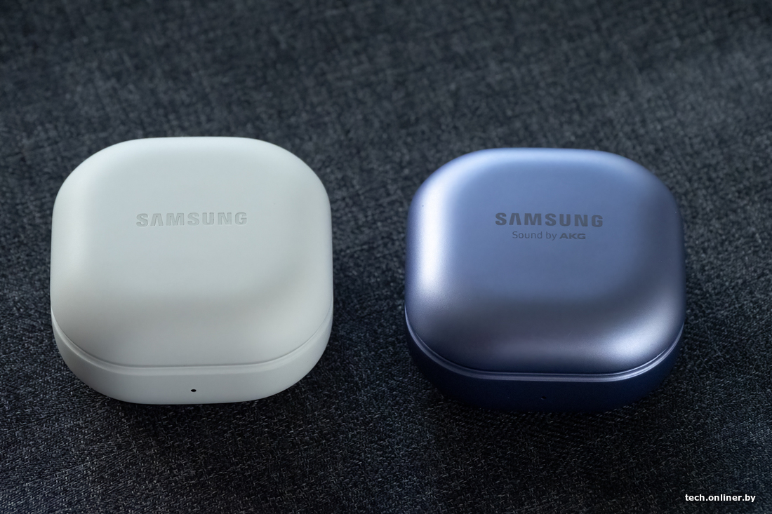Дизайн кейсов наушников снаружи практически полностью идентичен. Отличия кроются в нанесении наименования бренда: слово Samsung в новой версии выгравировано, а не нанесено краской. Кроме того, с крышки чехла Galaxy Buds 2 Pro исчезла надпись Sound by AKG, которая перебралась внутрь. Расположение разъема Type-C и индикатора остались прежними.