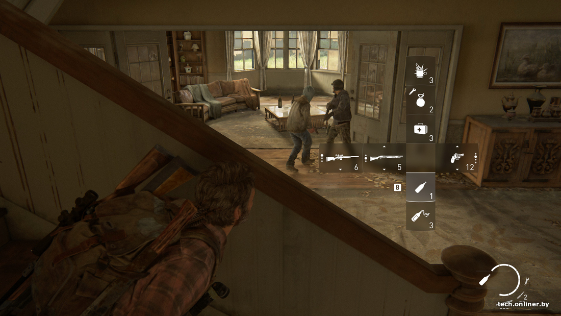 К сожалению, именно технические моменты вызвали негативные впечатления в начале игры (тебя убивают не потому, что ты медленный и тупой, а потому, что The Last of Us решила подвиснуть в момент атаки щелкуна). «Наверное, это крутая игра, но играть в нее с такими тормозами — это просто издевательство», — такая мысль проскользнула.