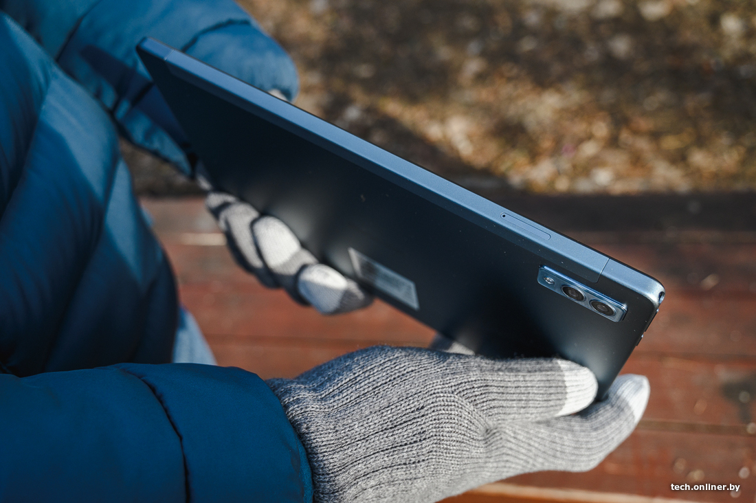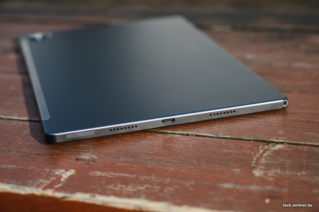 Но некоторые изменения в конструкции Tab 11 SE все же есть. Решетки динамиков, если держать планшет горизонтально, размещены также внизу, однако исчезли контактная площадка для подключения док-станции и углубления для нее же. Может, внутри планшет изменился заметнее?