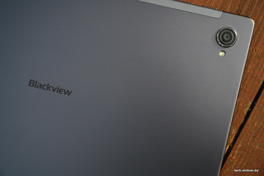 Blackview Tab 15 еще более лаконичный и, можно сказать, стильный. Темно-серый графитовый алюминиевый корпус, тонкий силуэт и уже традиционная для устройств пластиковая вставка отличающегося цвета — на этот раз тонкая и изящная, но все так же выступающая над остальной поверхностью. На задней панели лишь один «глазок» камеры, рядом светодиодная вспышка.