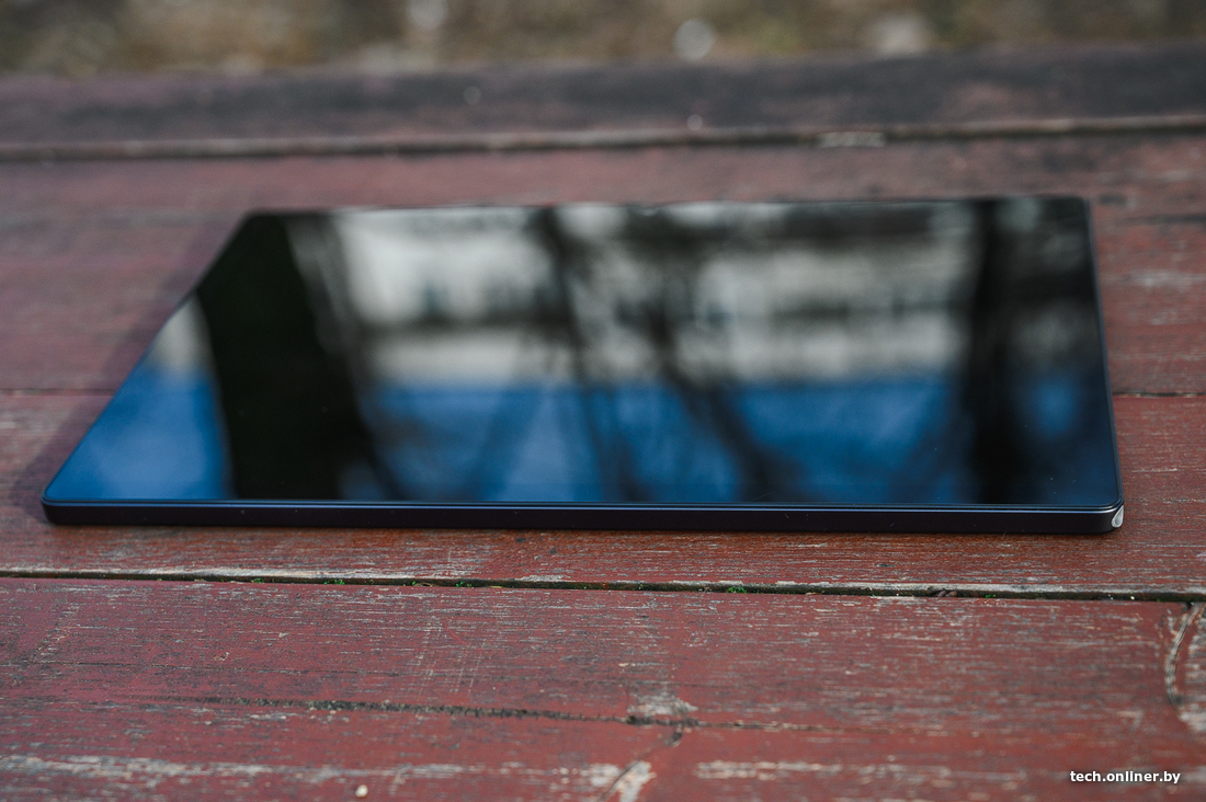 В ландшафтном режиме кнопки питания и громкости находятся на верхнем торце слева, на правом краю — микрофон, на правом торце — разнесенные по бокам динамики, гибридный слот для карт памяти и SIM-карт, разъем USB Type-C, на левом уголке — 3,5-миллиметровый разъем для наушников. На этот раз предусмотрена пластиковая втулка, поэтому разъем не режет пальцы острыми краями, да и штекер наушников целее будет. На нижнем торце нет ничего, на левом — еще пара «грилей» динамиков (да, их всего четыре).