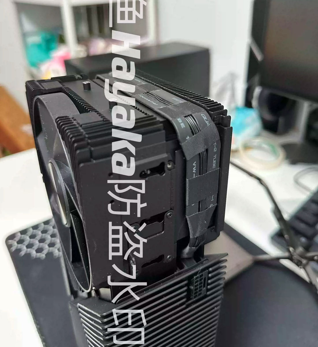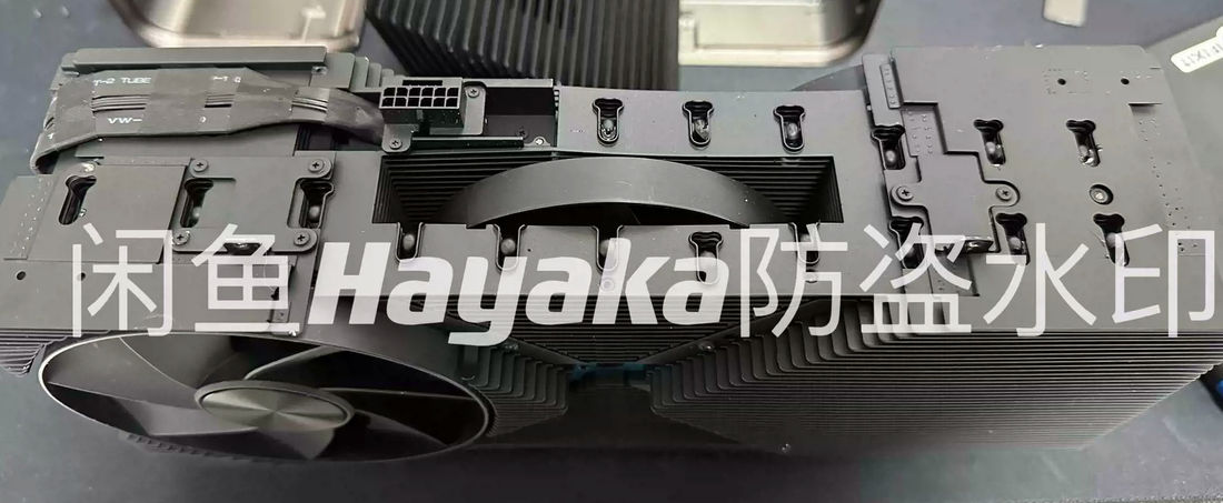 Система охлаждения оснащается двумя вентиляторами, а в середине огромного радиатора установлен еще один кулер. Тут есть испарительная камера, а по радиатору проходит 22 тепловые трубки. В сети уточняют, что такая видеокарта получила бы печатную плату, размещенную под углом 90 градусов относительно интерфейса PCIe, а ее энергопотребление могло бы достигать 600 Вт.