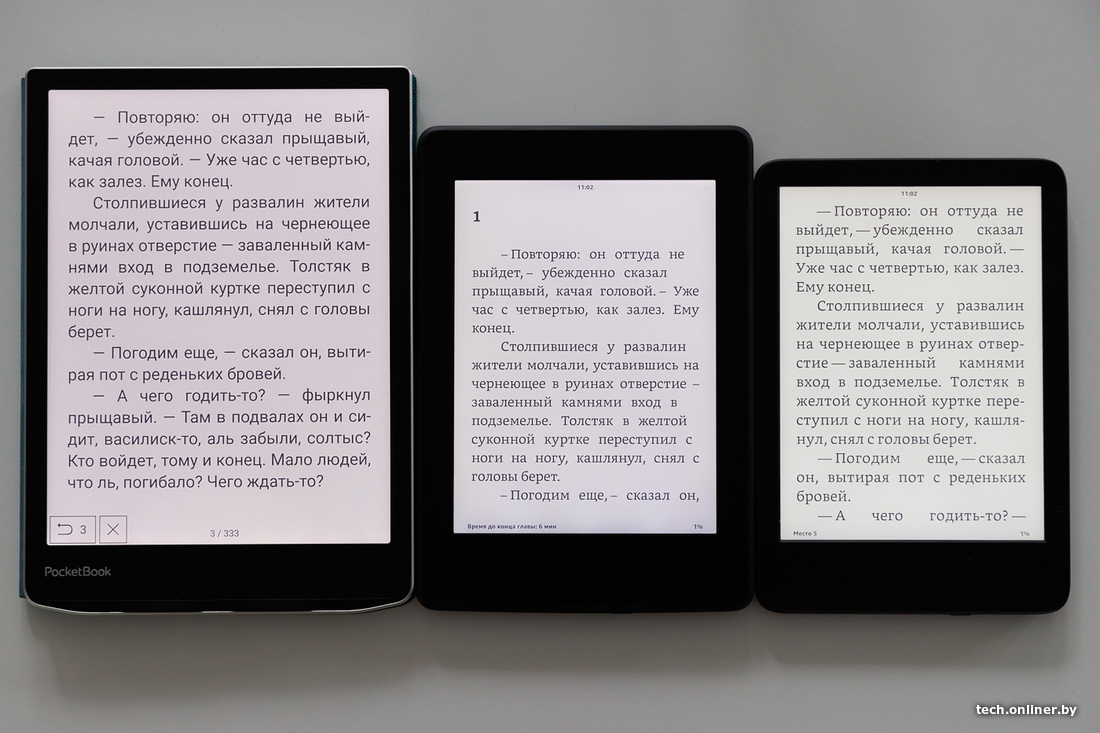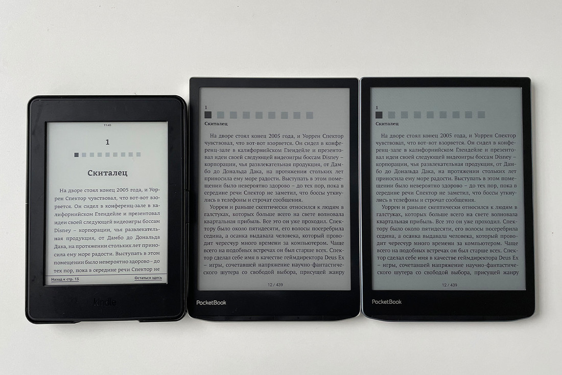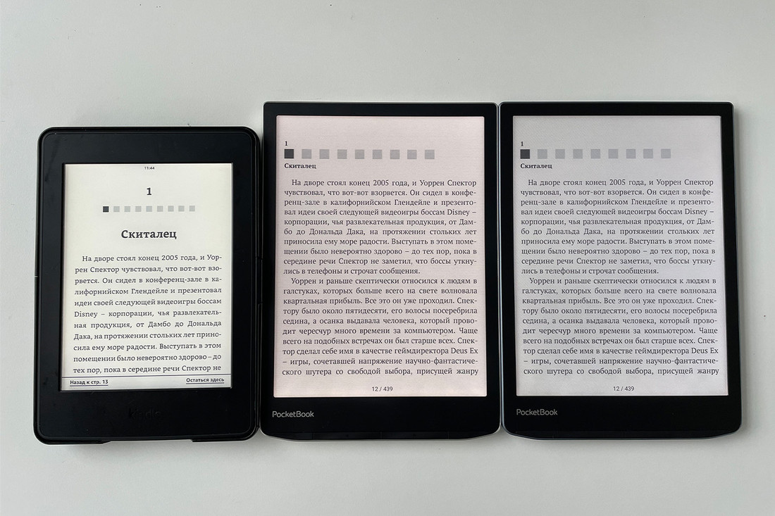 Обычный текст отображается на двух читалках по-разному: на фотографиях ниже это хорошо видно. Для сравнения добавили фото Kindle Paperwhite.