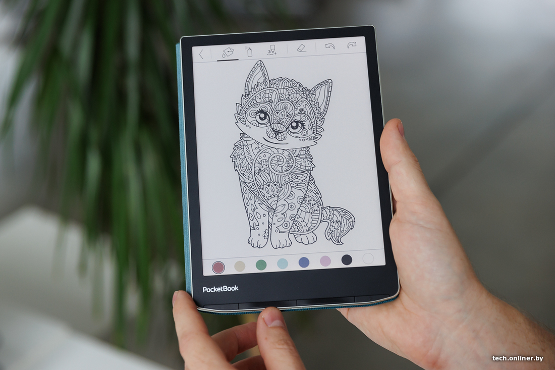 Прочие мелочи есть во многих читалках Pocketbook. Например, калькулятор, судоку, шахматы, календарь. Из уникальных функций InkPad Color 2 — раскраска и цветные заметки. Когда раскрашивать станет нечего, новые картинки можно загрузить в отдельную папку самому (в формате PNG). Правда, «карандашей» всего восемь.