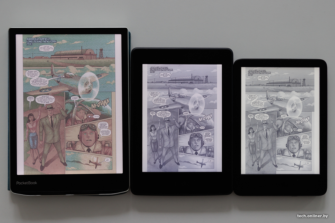При прямом сравнении двух читалок разница заметна сразу. Красные, синие и зеленые оттенки на экране Color 3 выглядят более насыщенными, но иногда создается впечатление, что читалка чересчур «зеленит».