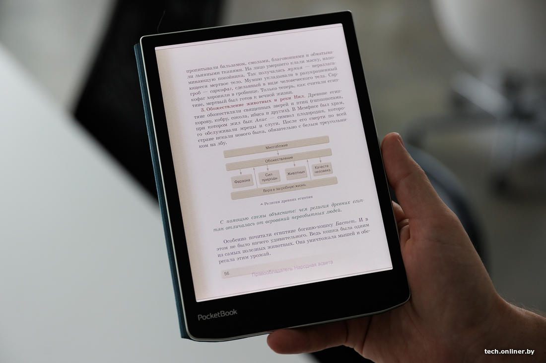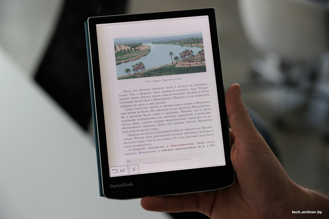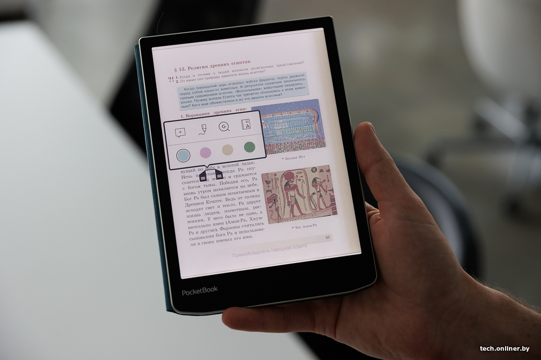 Другой полезный кейс цветных читалок — учебники, журналы и книги с иллюстрациями, схемами и цветными акцентами. Например, вот учебник по истории, где без цветных картинок было бы не так интересно. Вдобавок в любых книгах можно цветными стикерами выделять цитаты и делать заметки.