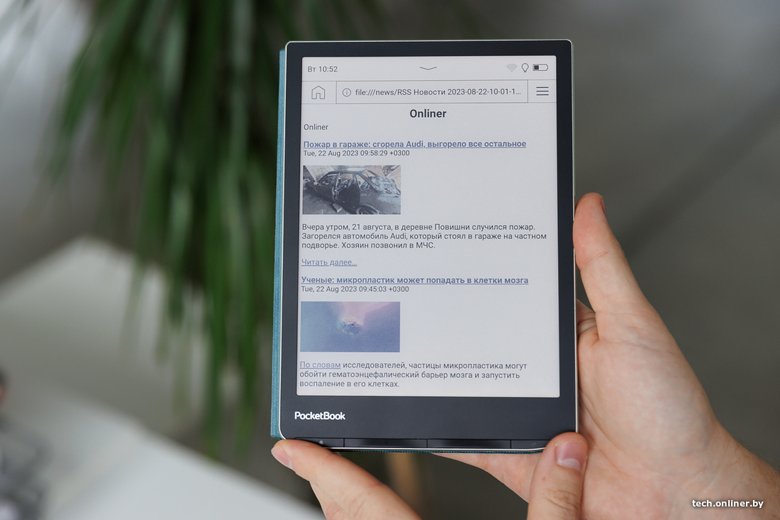 С поддержкой RSS, когда новости из разных источников летят в одну ленту, ридер буквально становится электронной газетой с цветными иллюстрациями.