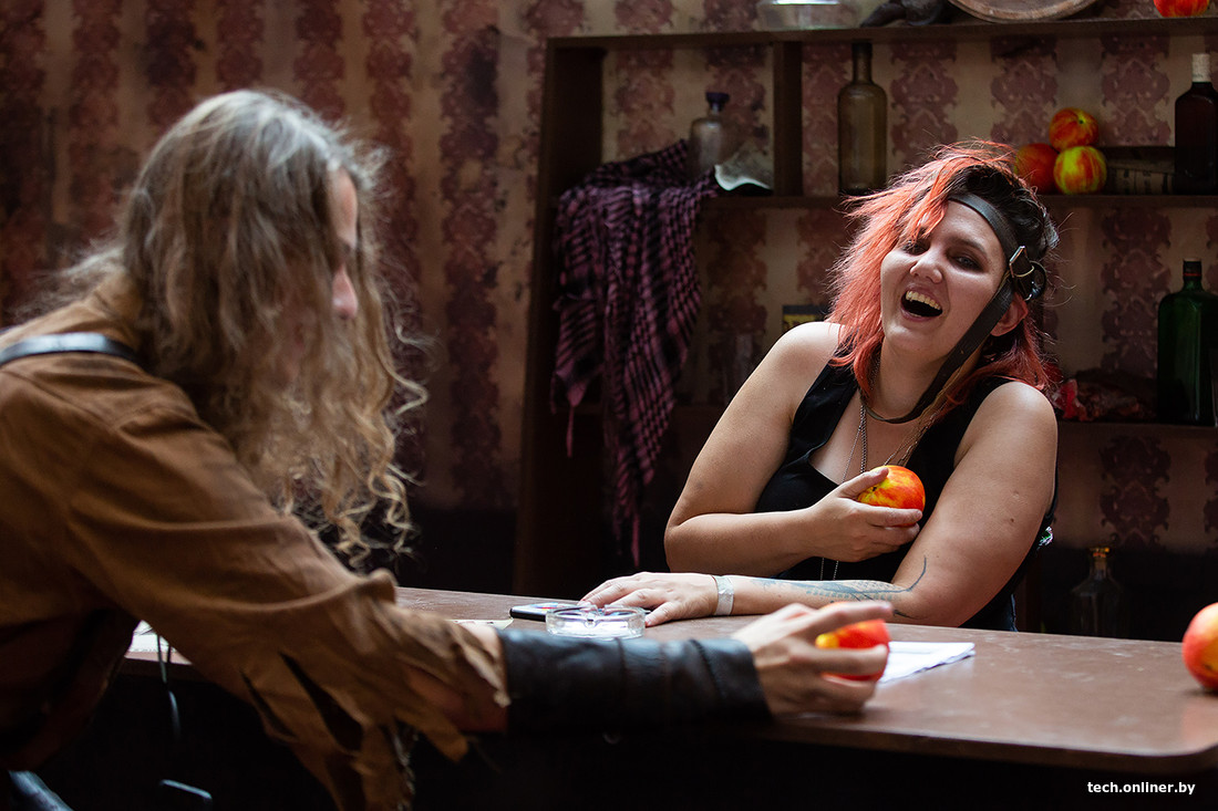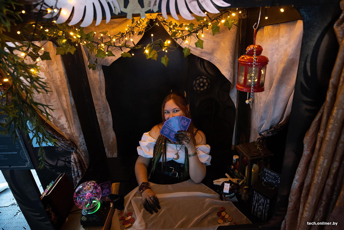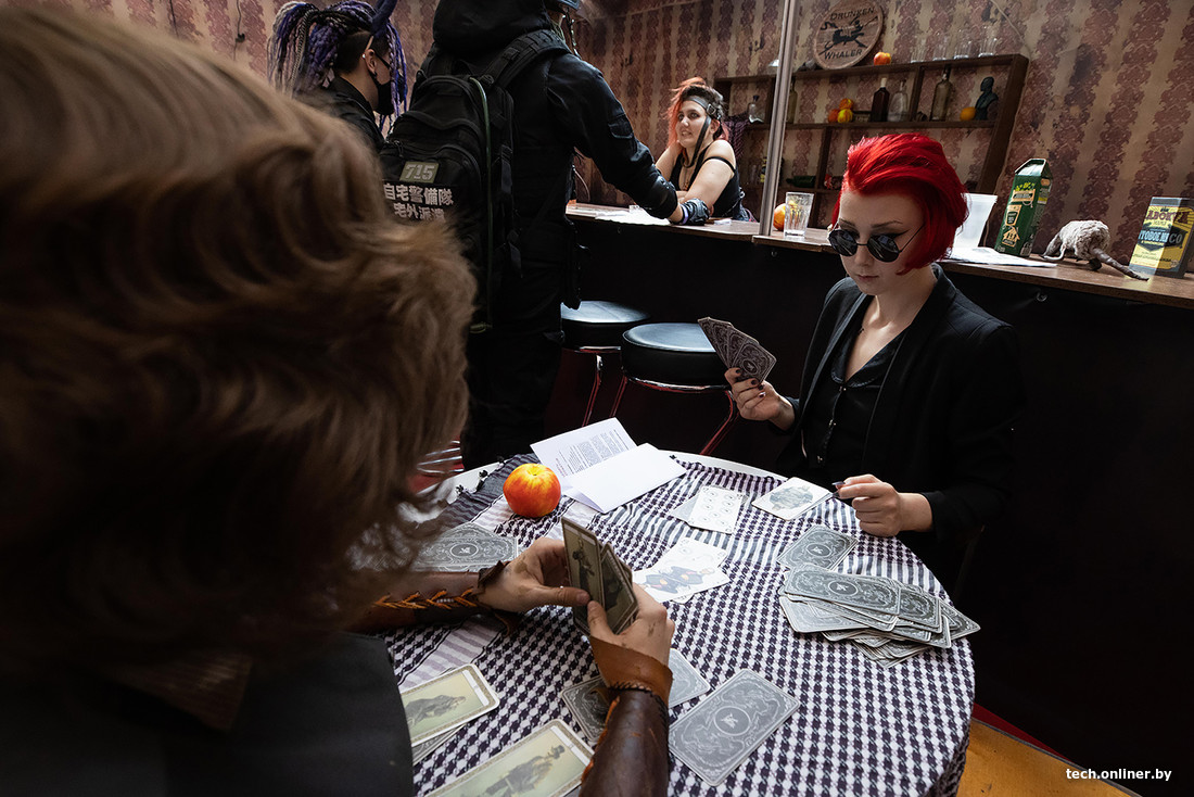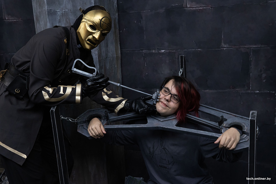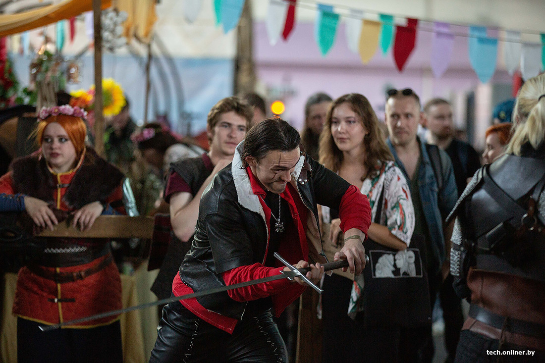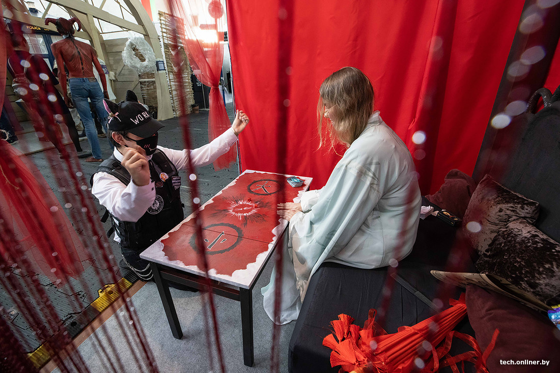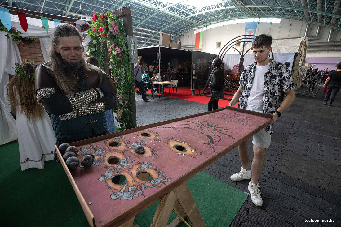 Еще на стендах нужно было драться на игрушечных мечах, разбираться с задачками на логику, проявлять знание лора, а кое-где даже побывать в кандалах — с перспективой заработать клеймо на щеке. Сделано все в формате «от фанатов для фанатов» — местами шероховато, но с любовью к первоисточнику.