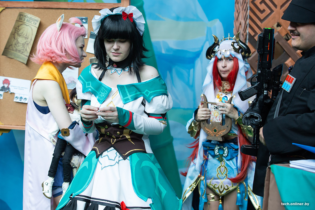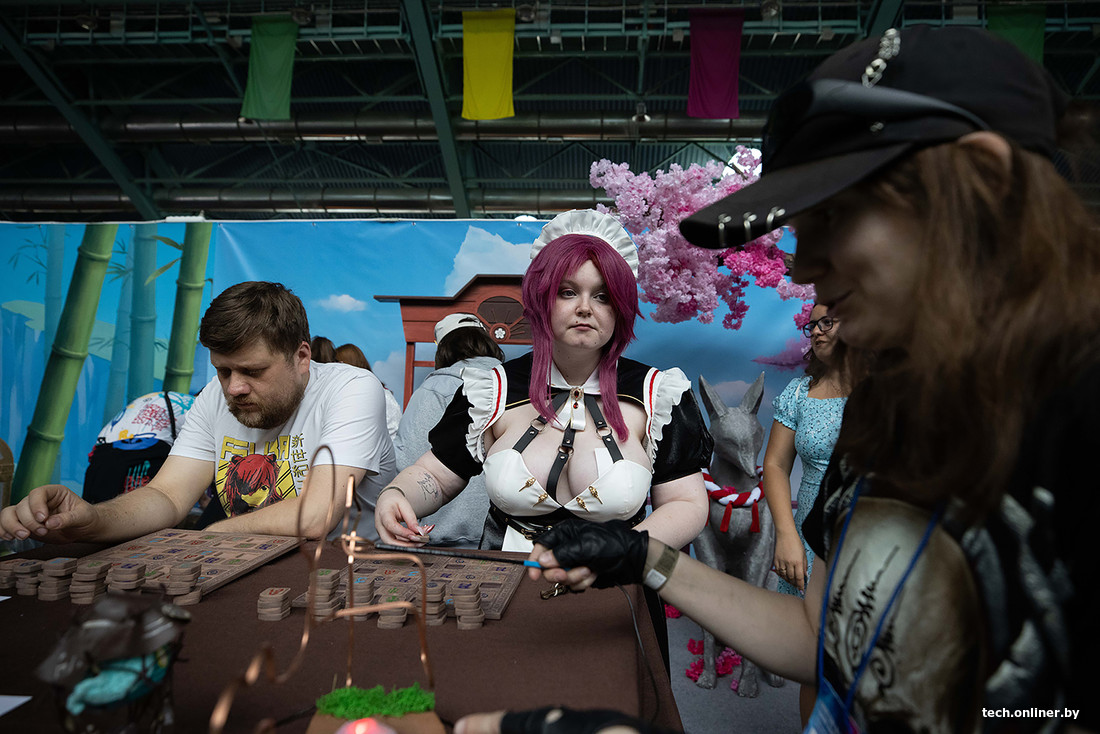 В нашем интервью организатор Unicon & Game Expo Minsk рассказывала, что 2023-й стал первым годом, когда на выставку официально допустили аниме — до этого Восток на ивенте игнорировали. По ее словам, в ответ на эту новость в соцсетях поднялся ор — но я не заметил, чтобы на выставке возникла какая-то дележка территории. Дио из «Невероятных приключений ДжоДжо» спокойно разгуливал по ивенту вместе с персонажами из «Пожирателя душ», «Благословения небожителей» и разношерстными аниме-горничными. Эдакий гик-космополитизм, где все в одной лодке.