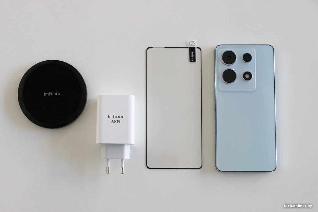 Загибайте пальцы. Увесистое зарядное устройство на 68 Вт — на месте. Пластиковый чехол-бампер — присутствует. В довесок к пленке, уже наклеенной на экран, положили защитное стекло. А в качестве бэнгера в отдельную коробочку поместили беспроводную зарядку на 15 Вт.
