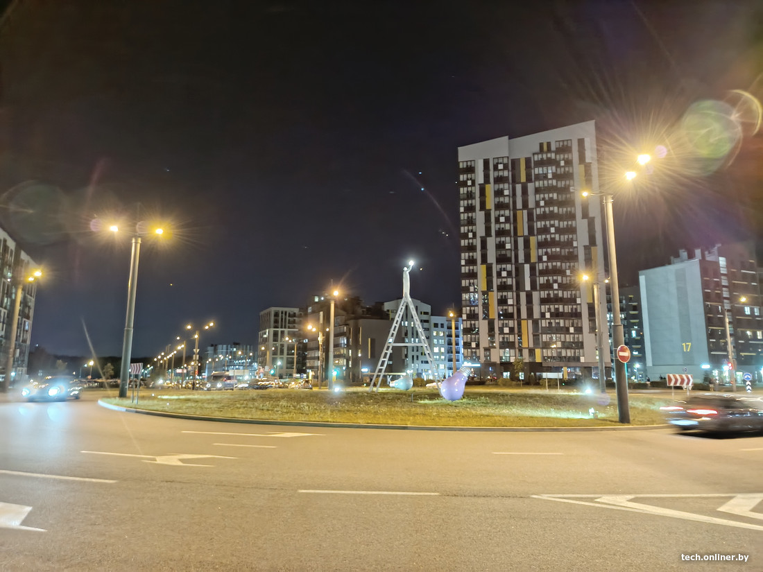 Хуже всего снимать на улице, где горит несколько фонарей. Смартфон начинает сходить с ума: фокус прыгает между источниками света, и камера никак не может сообразить, на чем ей сосредоточиться. В довесок появляется раздражающий эффект пыльной линзы, будто бы фотомодули заляпали пальцами.