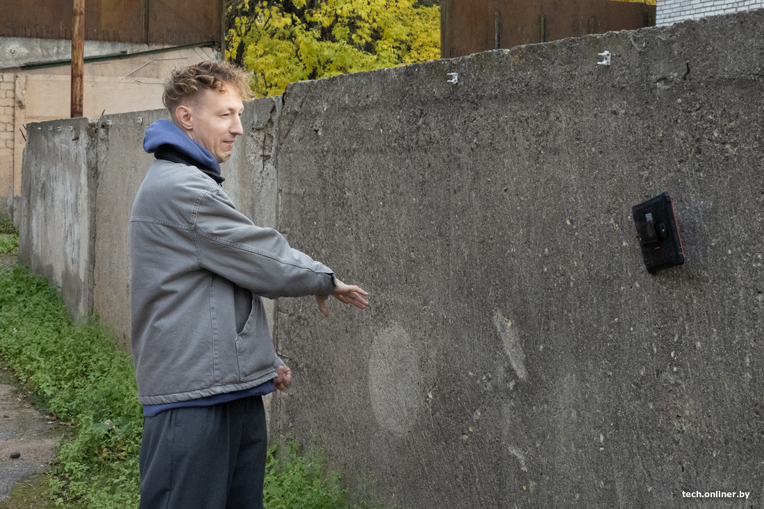 Напоследок решили метнуть планшет в бетонный забор. И это едва не закончилось проблемами: плита перекрытия издала неприятный звук, потеряла часть себя и, кажется, едва устояла. Будь удар чуть сильнее, забору бы не поздоровилось.